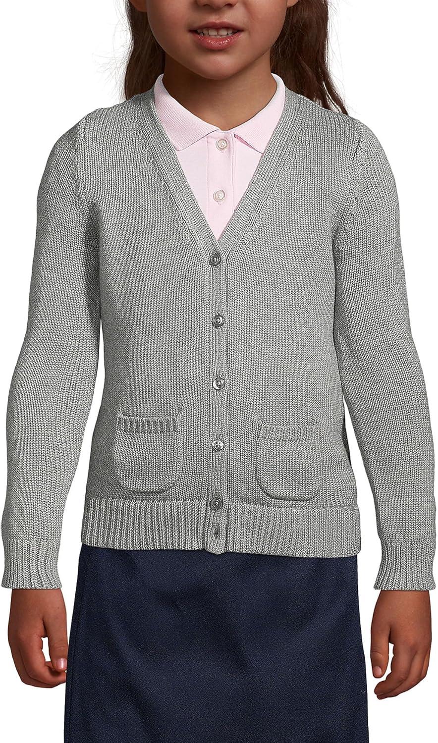 Lands’ End School Uniform Girls Cotton Modal Button Front Cardigan Sweater(Pewter Heather)