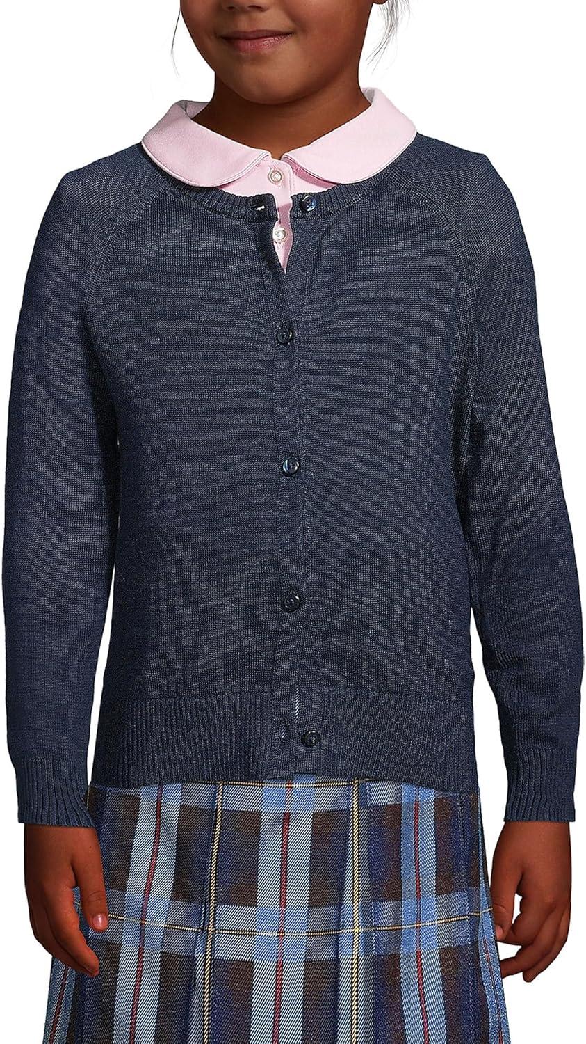 Lands’ End School Uniform Girls Cotton Modal Cardigan Sweater(Classic Navy)