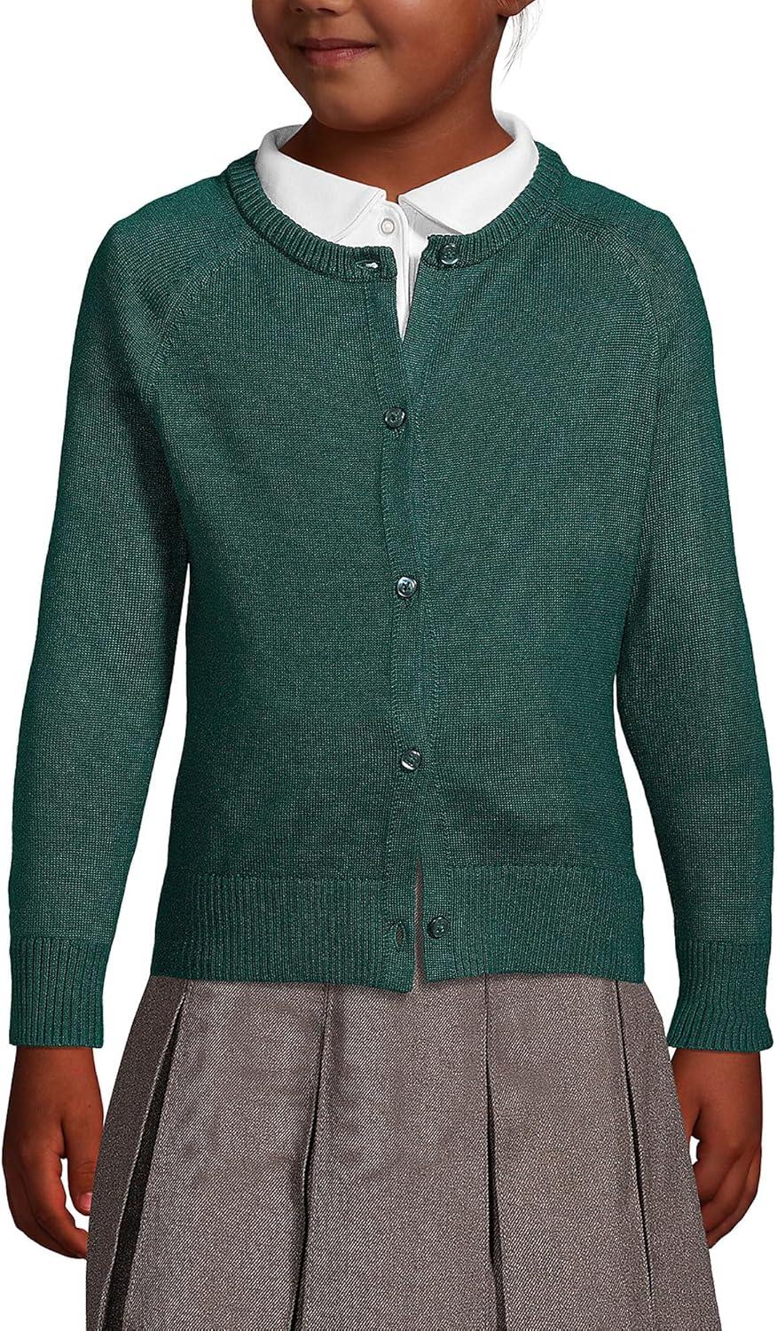 Lands’ End School Uniform Girls Cotton Modal Cardigan Sweater(Evergreen)