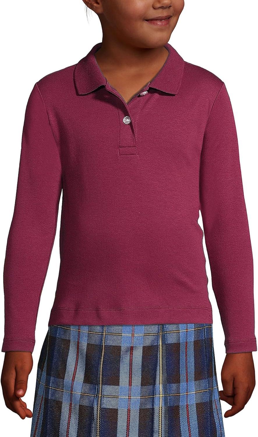 Lands’ End School Uniform Girls Long Sleeve Feminine Fit Interlock Polo Shirt(Burgundy)