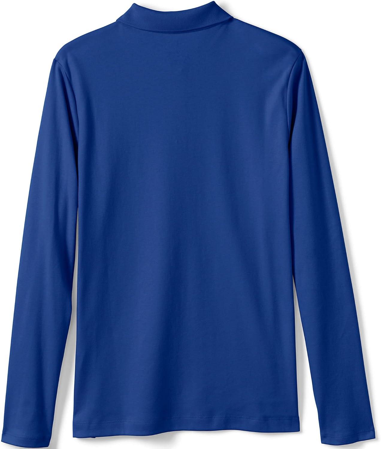Lands’ End School Uniform Girls Long Sleeve Feminine Fit Interlock Polo Shirt(Cobalt)