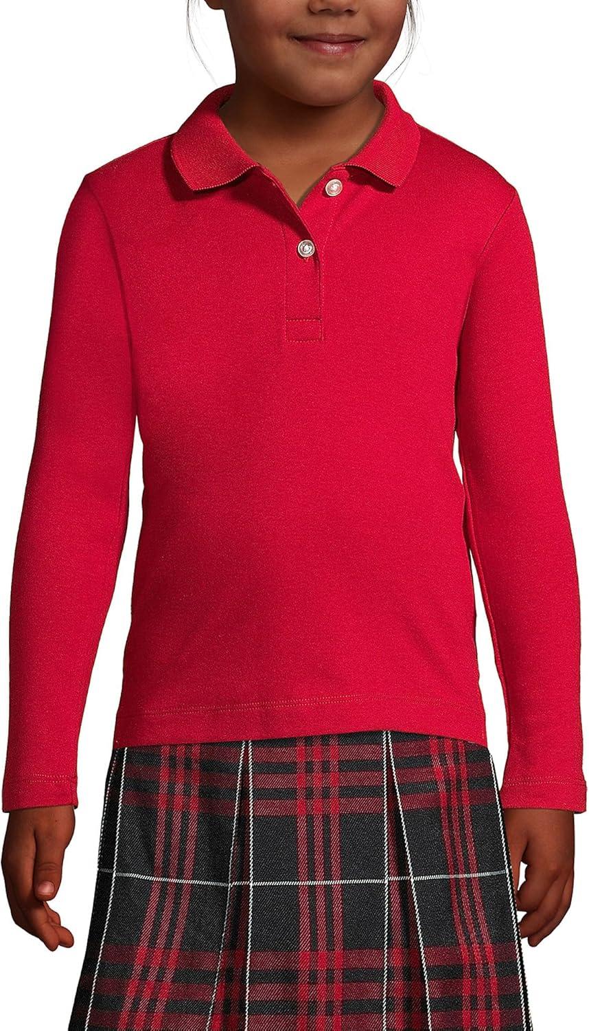 Lands’ End School Uniform Girls Long Sleeve Feminine Fit Interlock Polo Shirt(Red)