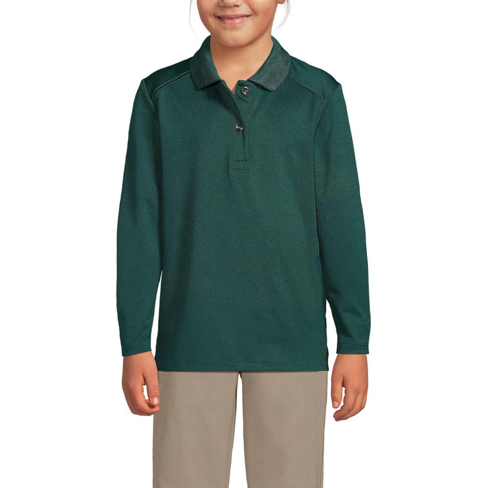 Lands’ End School Uniform Girls Long Sleeve Feminine Fit Rapid Dry Polo Shirt(Evergreen)