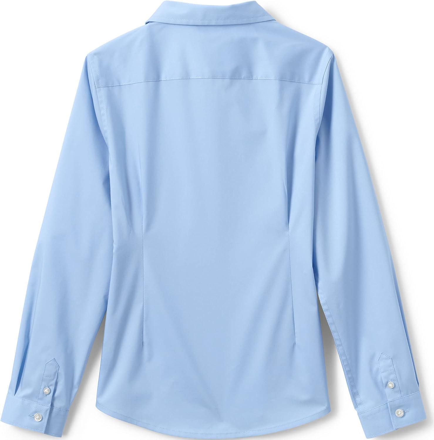 Lands’ End School Uniform Girls No Gape Long Sleeve Stretch Shirt(Light Sea Blue)