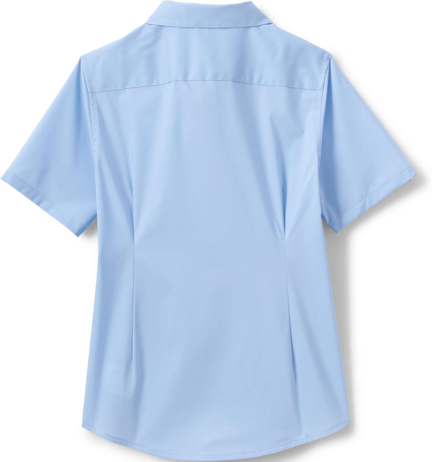 Lands’ End School Uniform Girls No Gape Short Sleeve Stretch Shirt(Light Sea Blue)