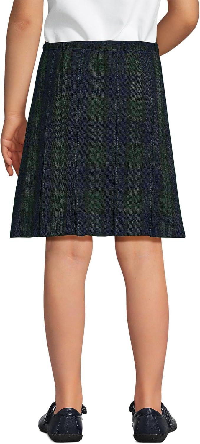 Lands’ End School Uniform Girls Plaid Box Pleat Skirt Top of The Knee(Classic Navy/Evergreen Plaid)