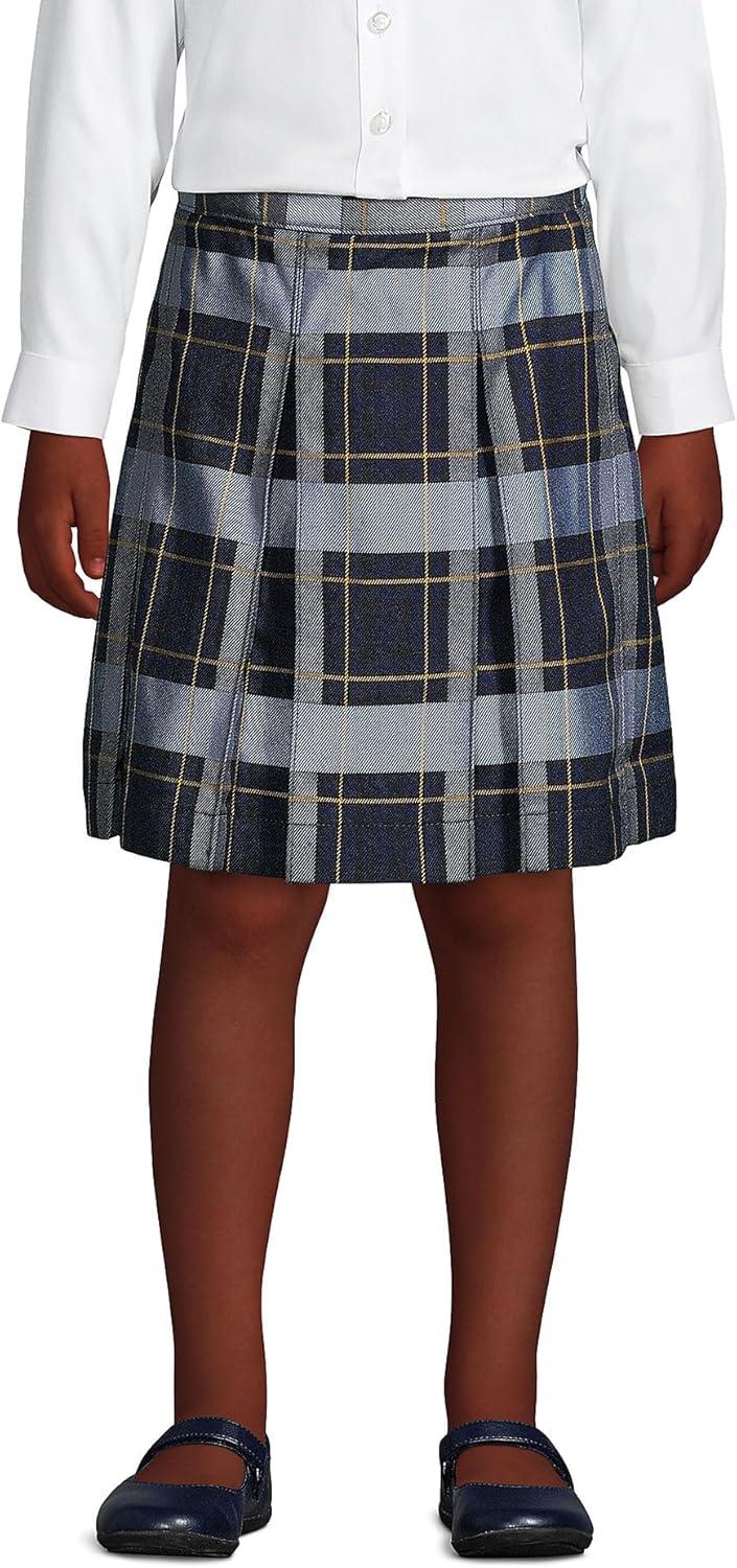 Lands’ End School Uniform Girls Plaid Box Pleat Skirt Top of The Knee(Classic Navy Plaid)
