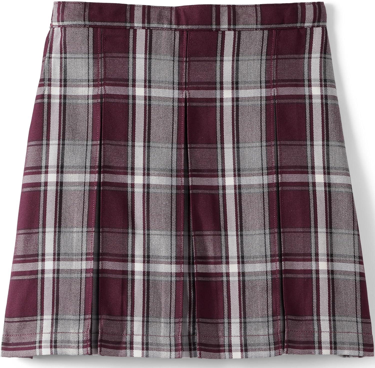 Lands’ End School Uniform Girls Plaid Box Pleat Skirt Top of The Knee(Plaid Burgundy/Gray)