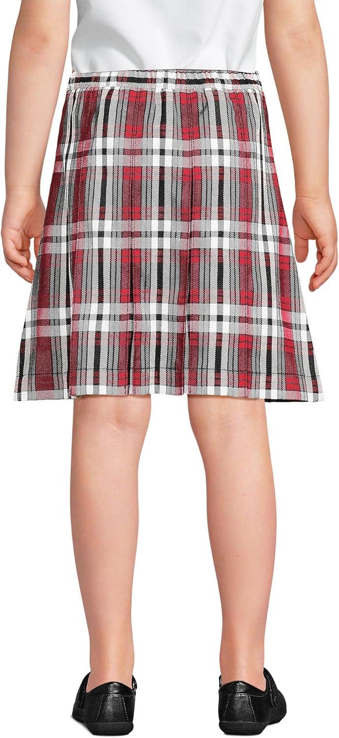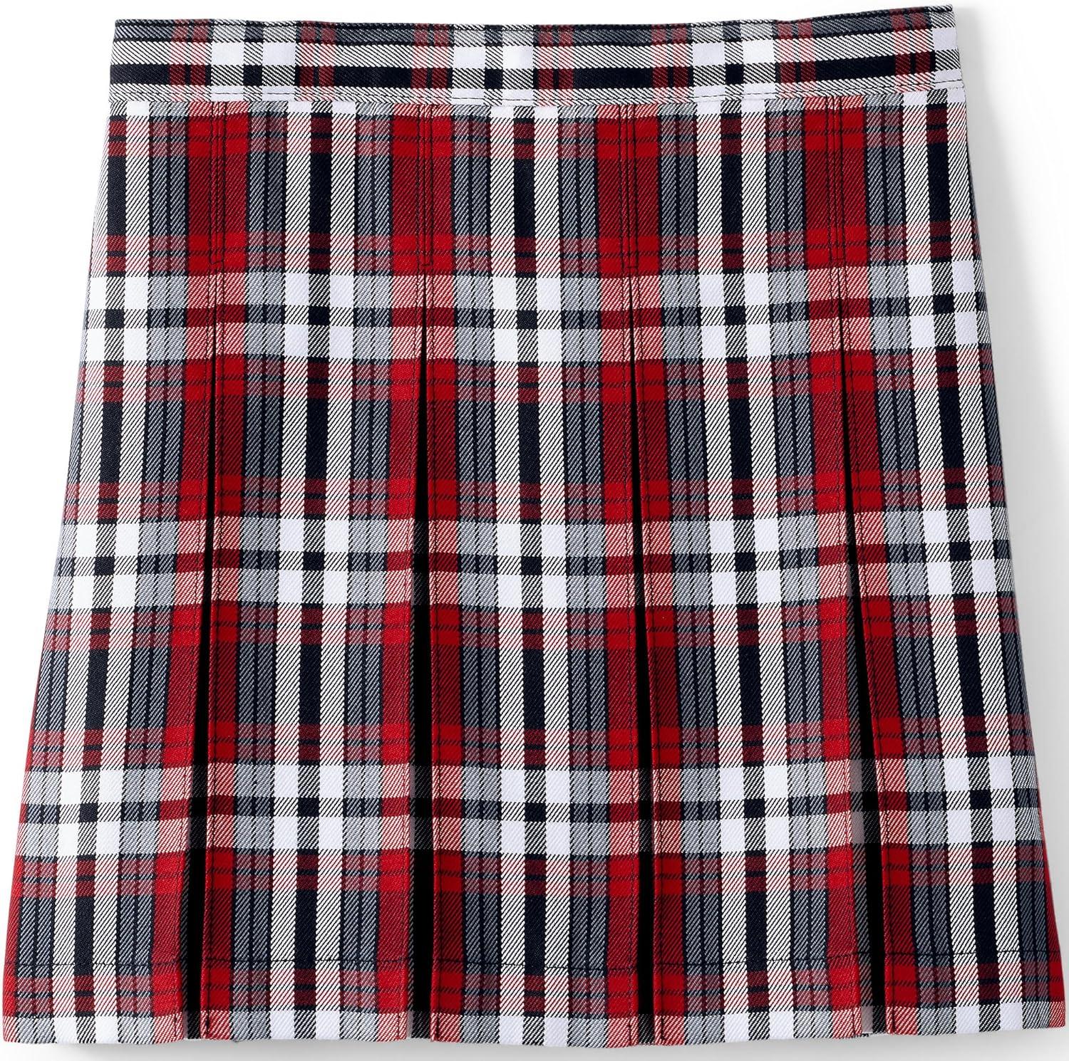 Lands’ End School Uniform Girls Plaid Box Pleat Skirt Top of The Knee(Red/Graphite Plaid)