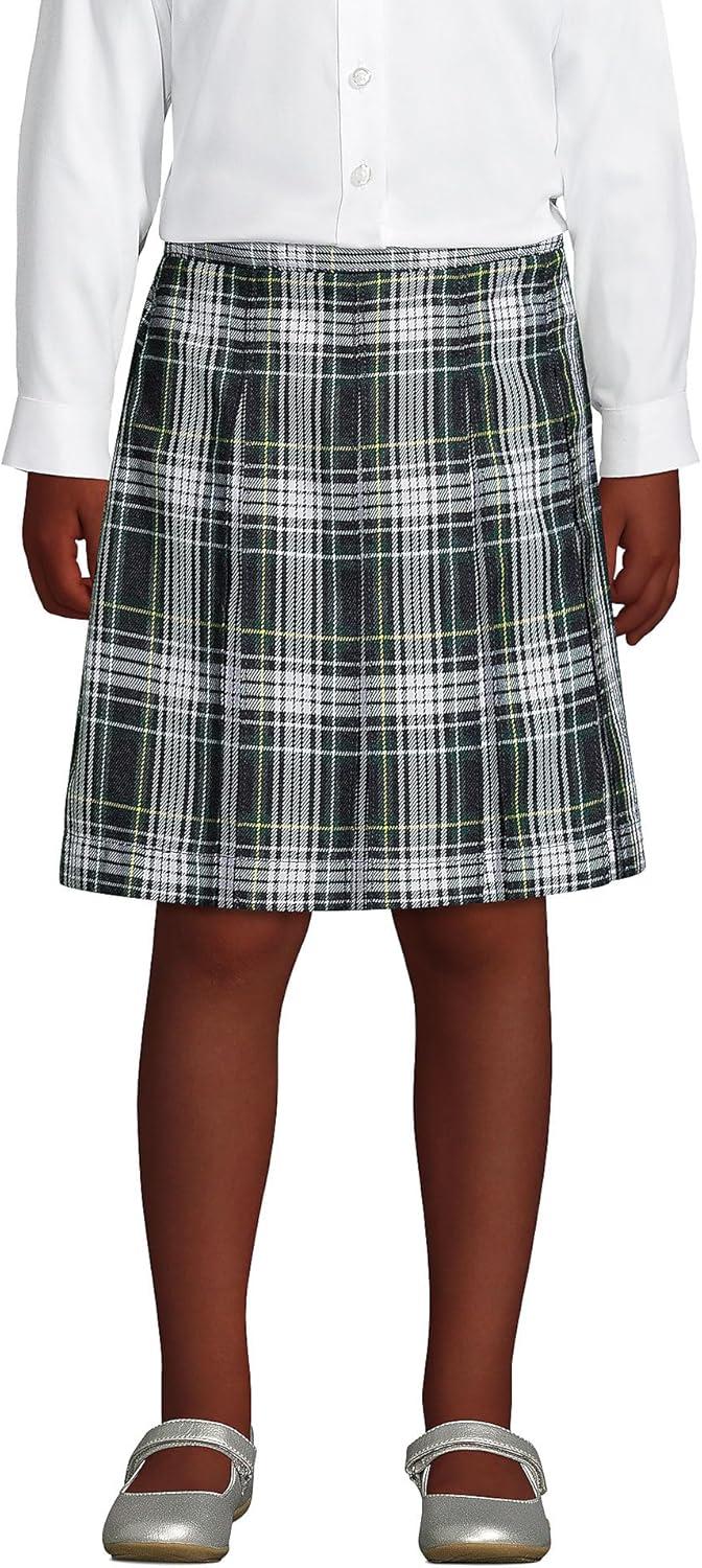 Lands’ End School Uniform Girls Plaid Box Pleat Skirt Top of The Knee(White/Evergreen Plaid)