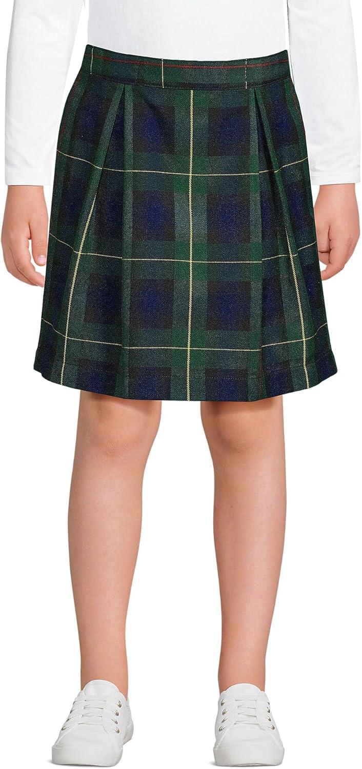 Lands’ End School Uniform Girls Plaid Skort Top of Knee(Hunter/Classic Navy Plaid)