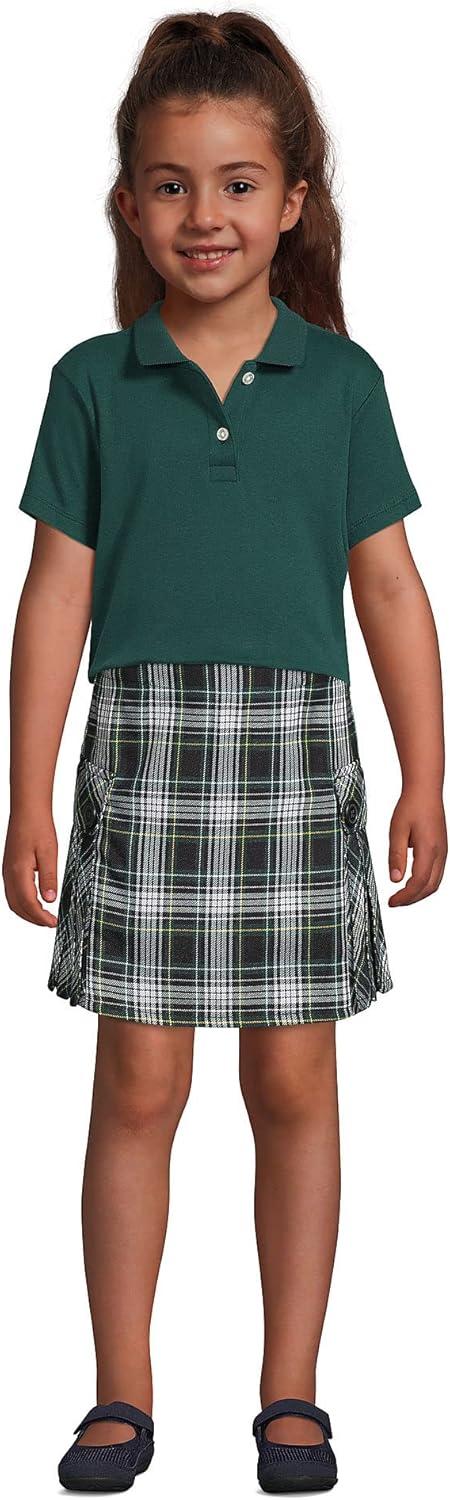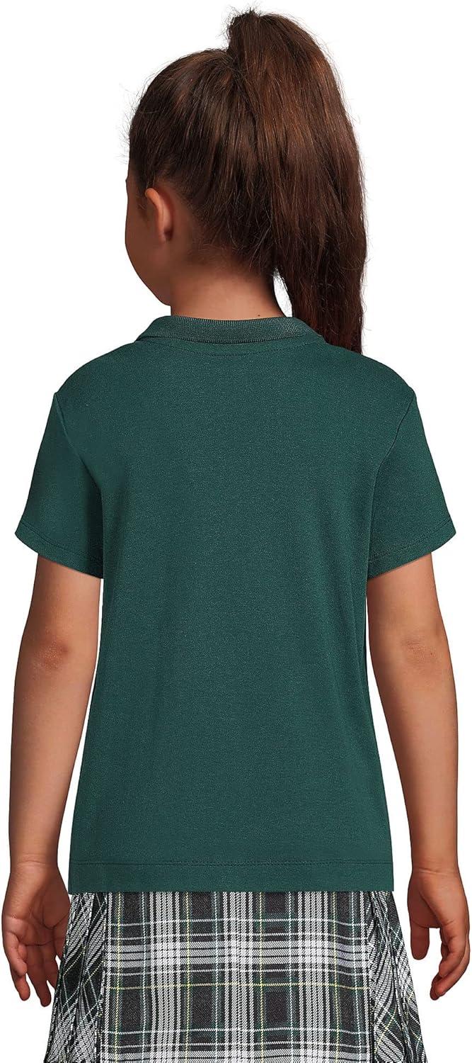 Lands’ End School Uniform Girls Short Sleeve Feminine Fit Interlock Polo Shirt(Evergreen)