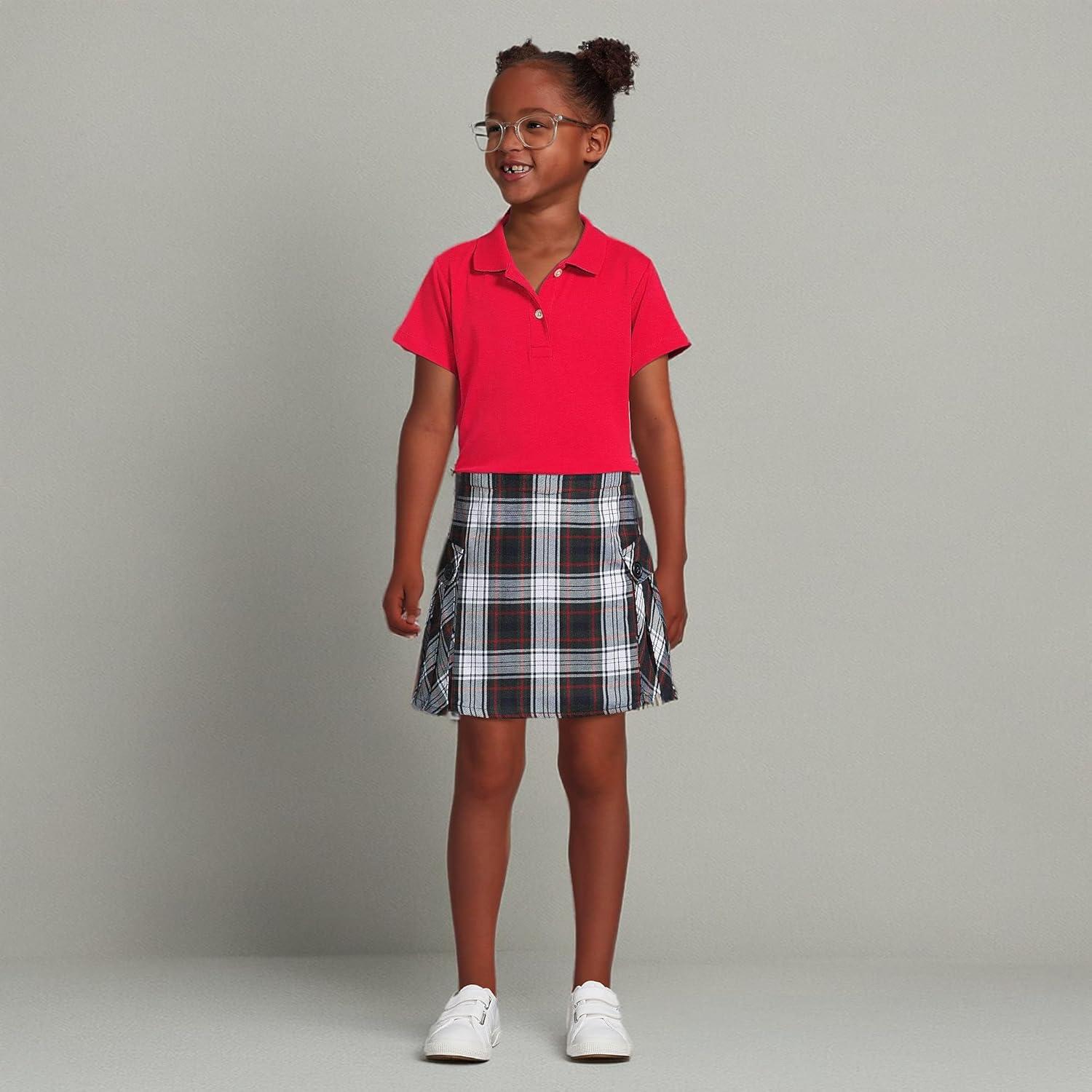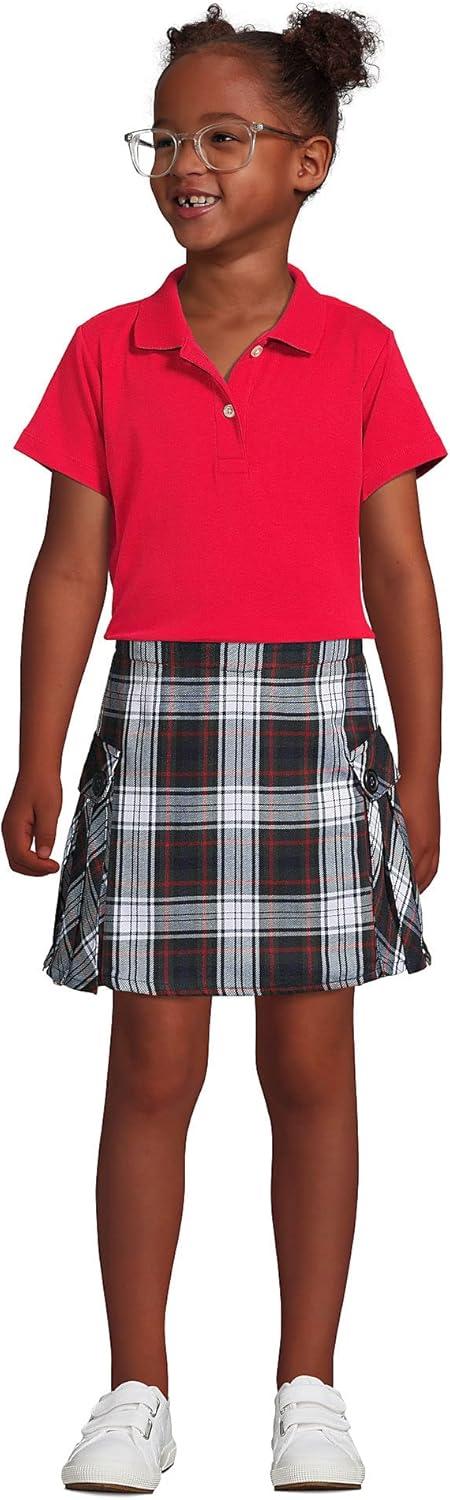 Lands’ End School Uniform Girls Short Sleeve Feminine Fit Interlock Polo Shirt(Red)