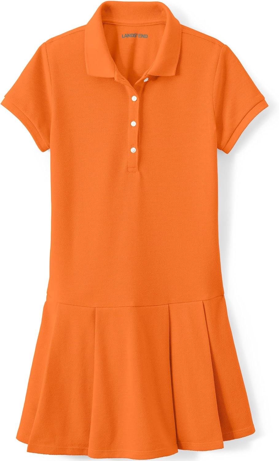 Lands’ End School Uniform Girls Short Sleeve Mesh Pleated Polo Dress(Orange Spice)