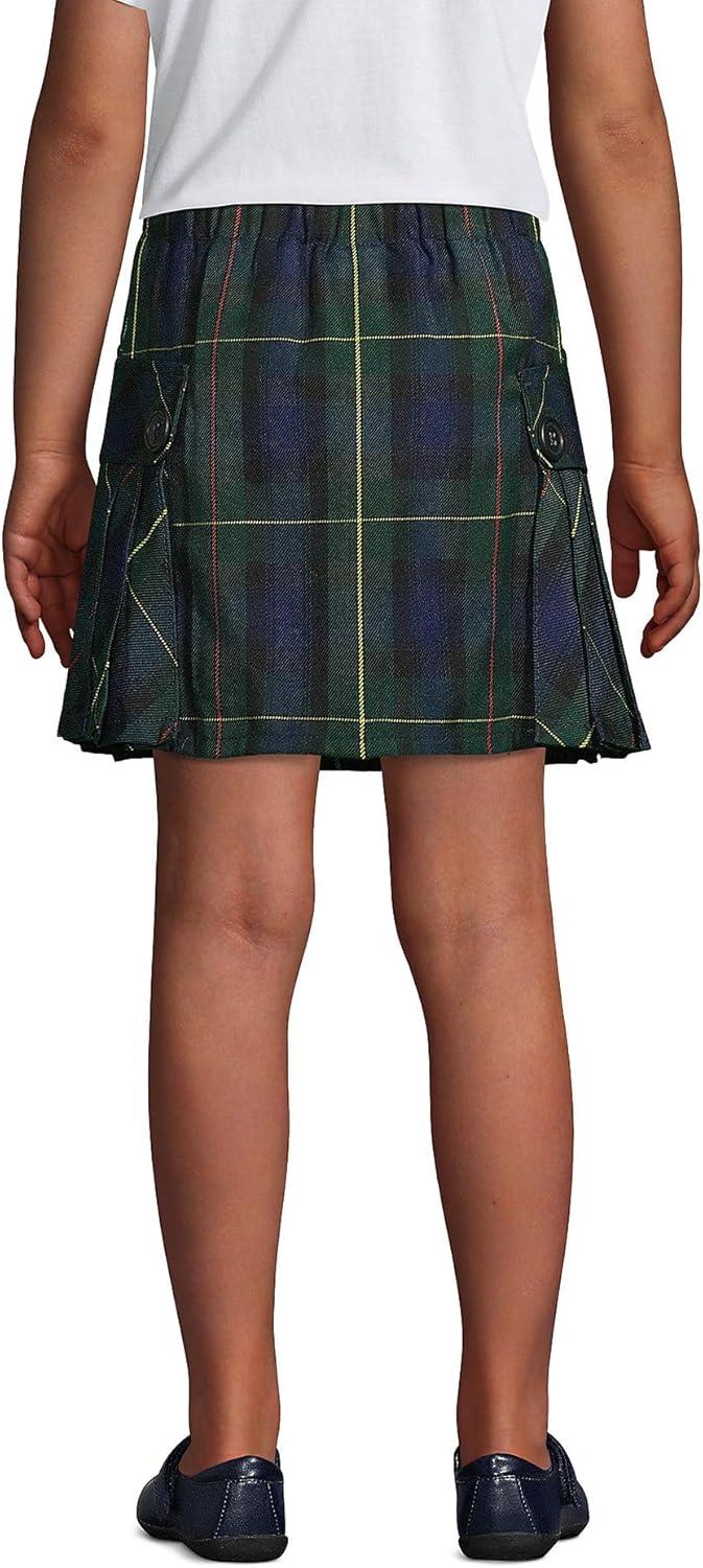 Lands’ End School Uniform Girls Side Pleat Plaid Skort Above Knee(Hunter/Classic Navy Plaid)