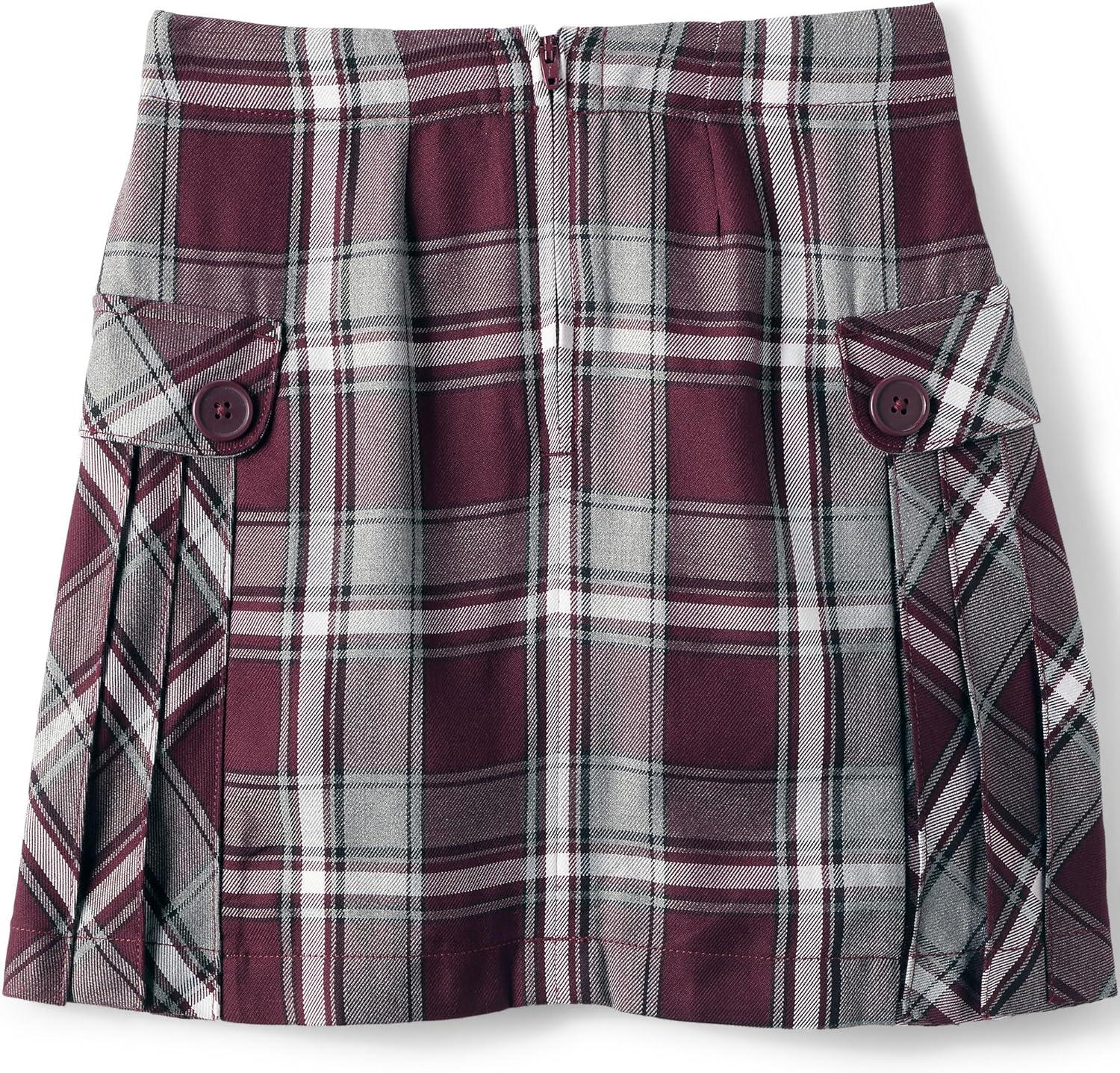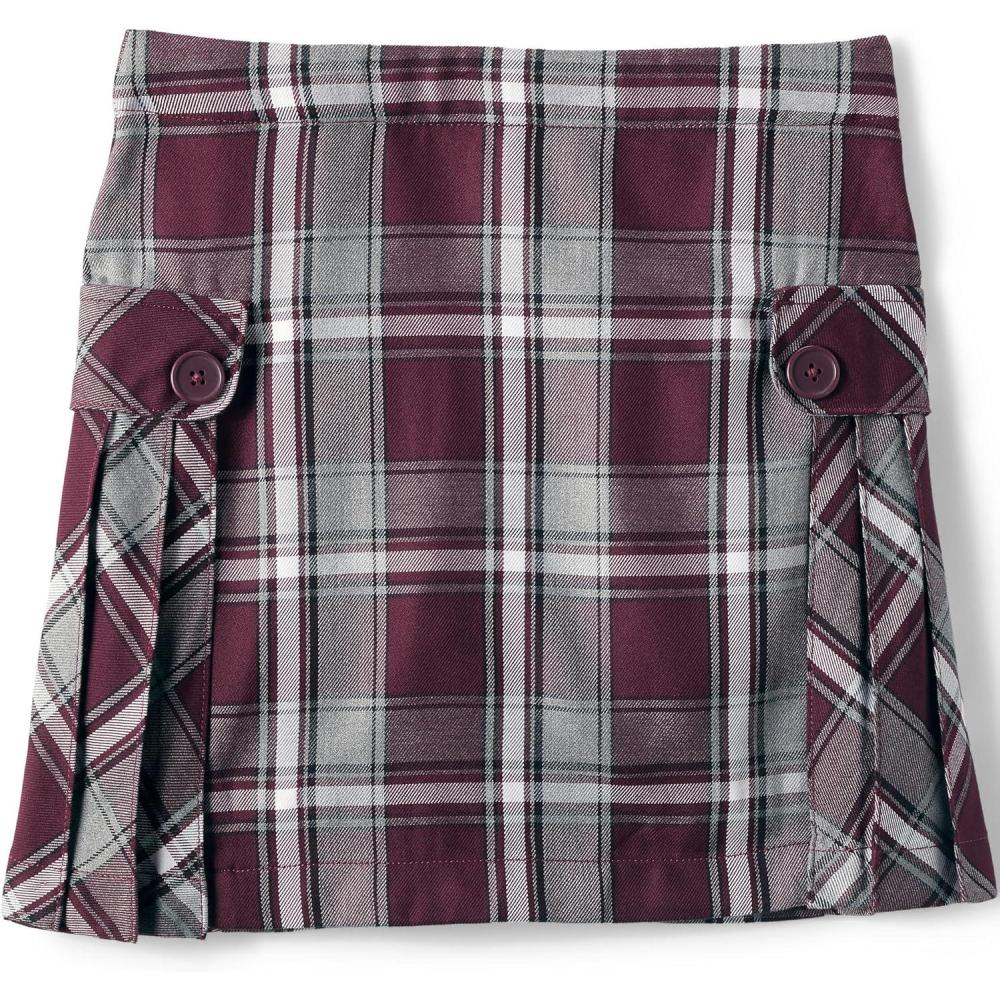 Lands’ End School Uniform Girls Side Pleat Plaid Skort Above Knee(Plaid Burgundy/Gray)