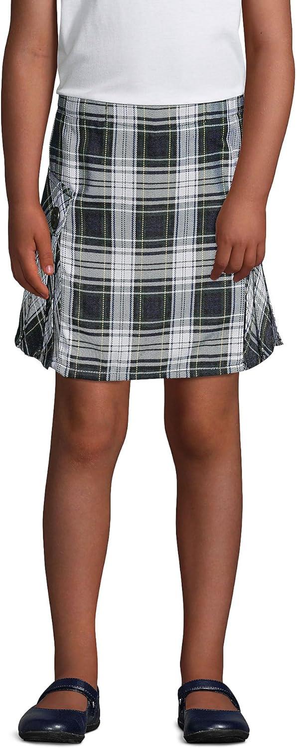 Lands’ End School Uniform Girls Slim Side Pleat Plaid Skort Above Knee(White Plaid)