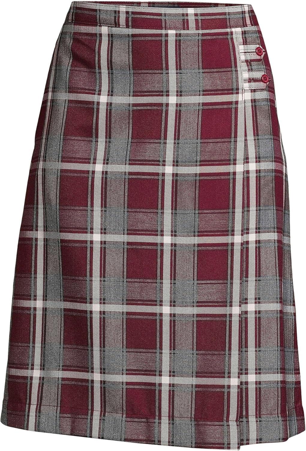 Lands’ End School Uniform Girls Solid A-line Skirt Below The Knee(Burgundy/gray Plaid)