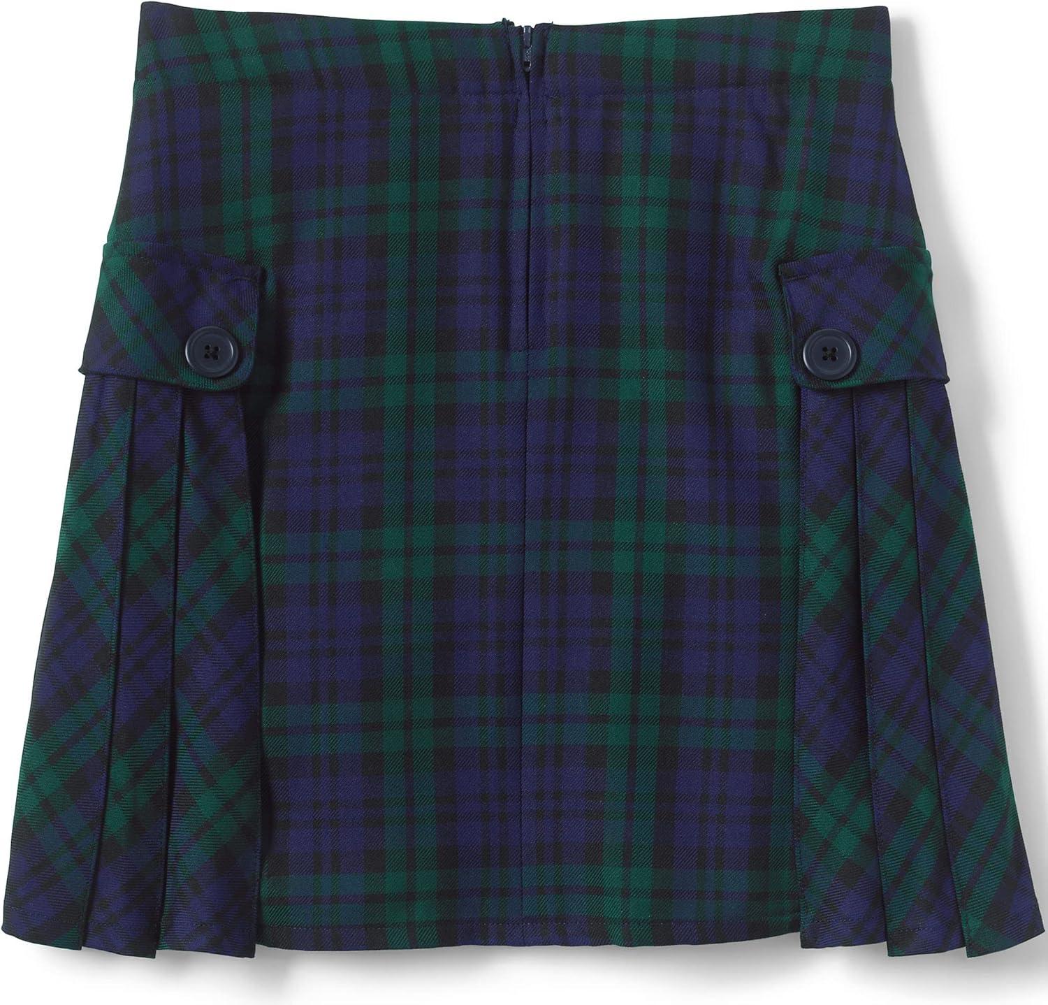 Lands’ End School Uniform Girls Solid A-line Skirt Below The Knee(Plaid Classic Navy/Evergreen)