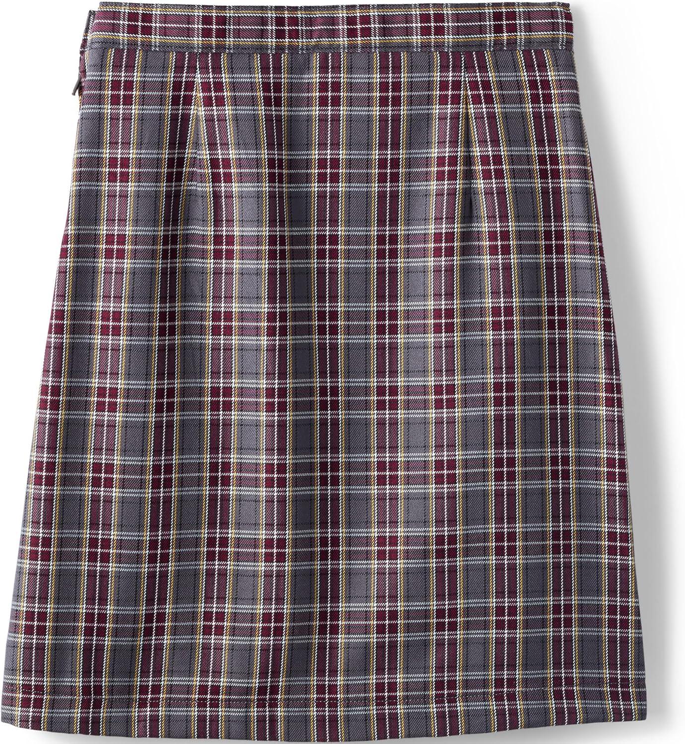 Lands’ End School Uniform Girls Solid A-line Skirt Below The Knee(Plaid Gray Heather/Maroon)