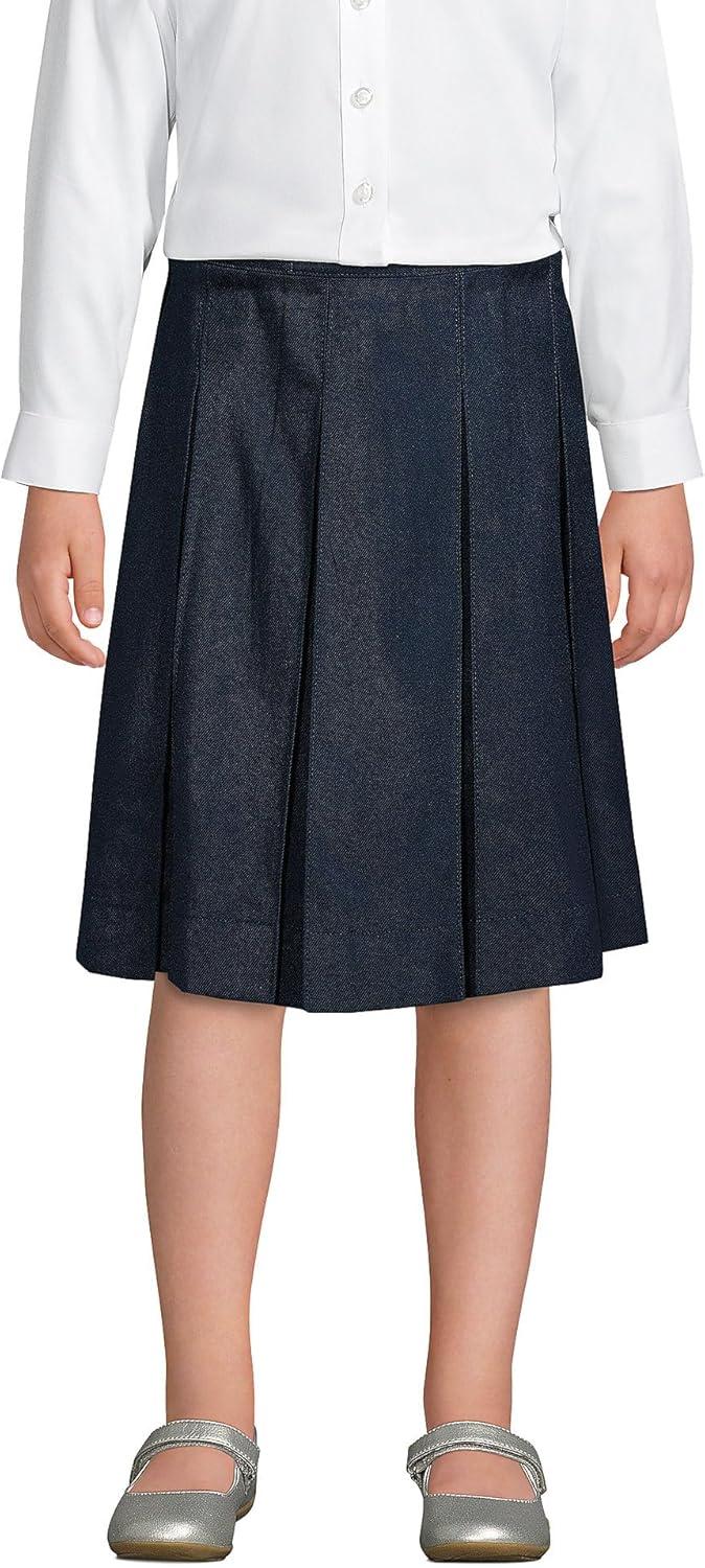 Lands’ End School Uniform Girls Solid Box Pleat Skirt Below The Knee(Classic Navy)