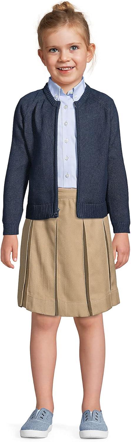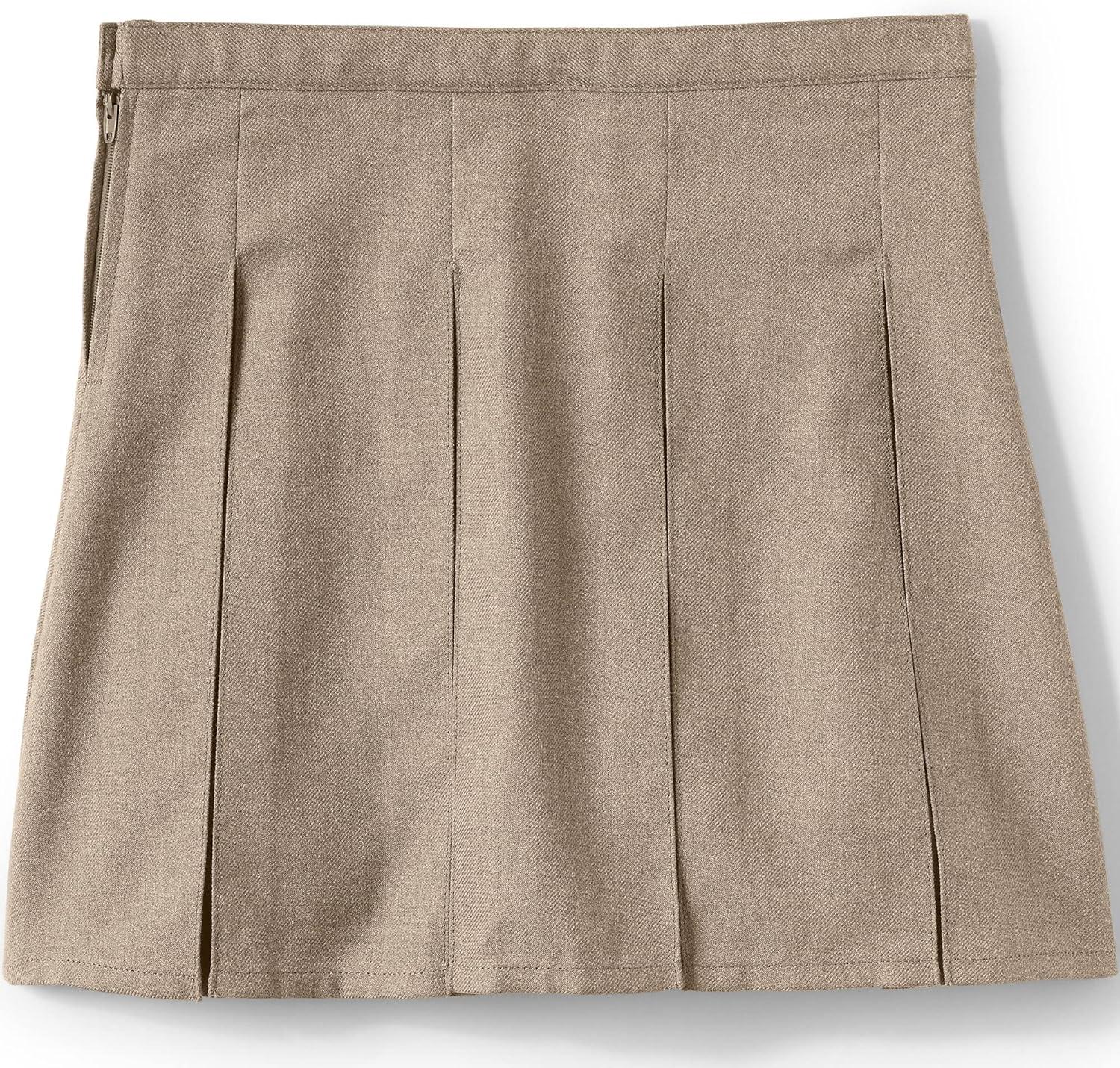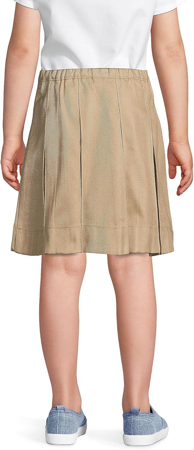 Lands’ End School Uniform Girls Solid Box Pleat Skirt Top of Knee(Khaki)