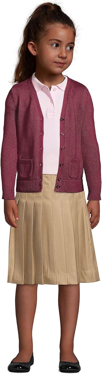 Lands’ End School Uniform Girls Solid Pleated Skirt Below The Knee(Khaki)