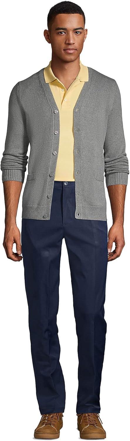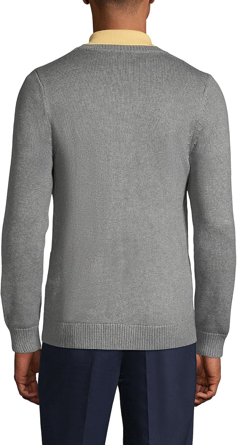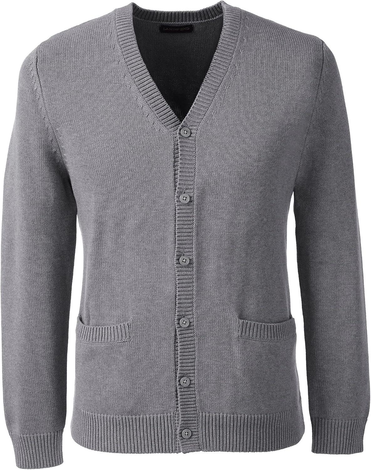 Lands’ End School Uniform Men’s Cotton Modal Button Front Cardigan Sweater(Pewter Heather)