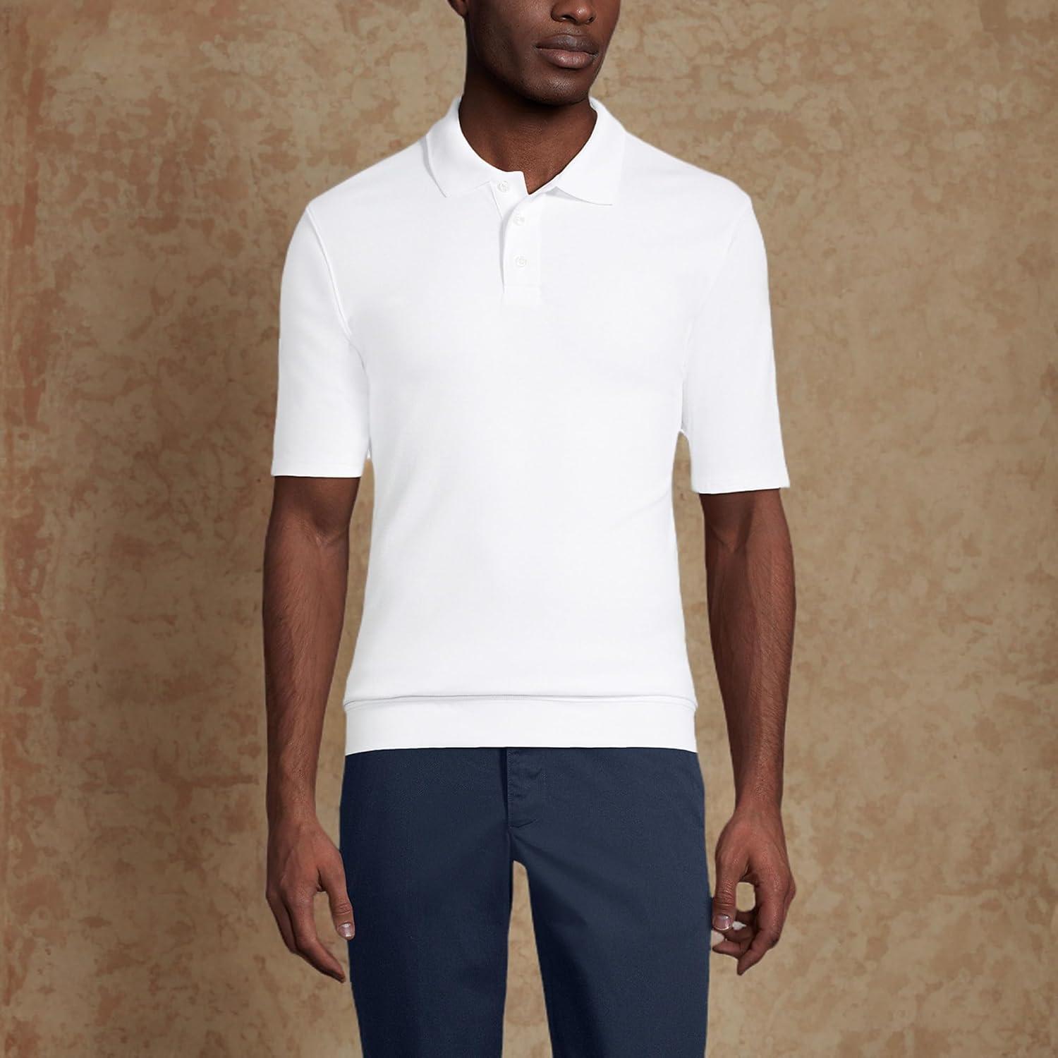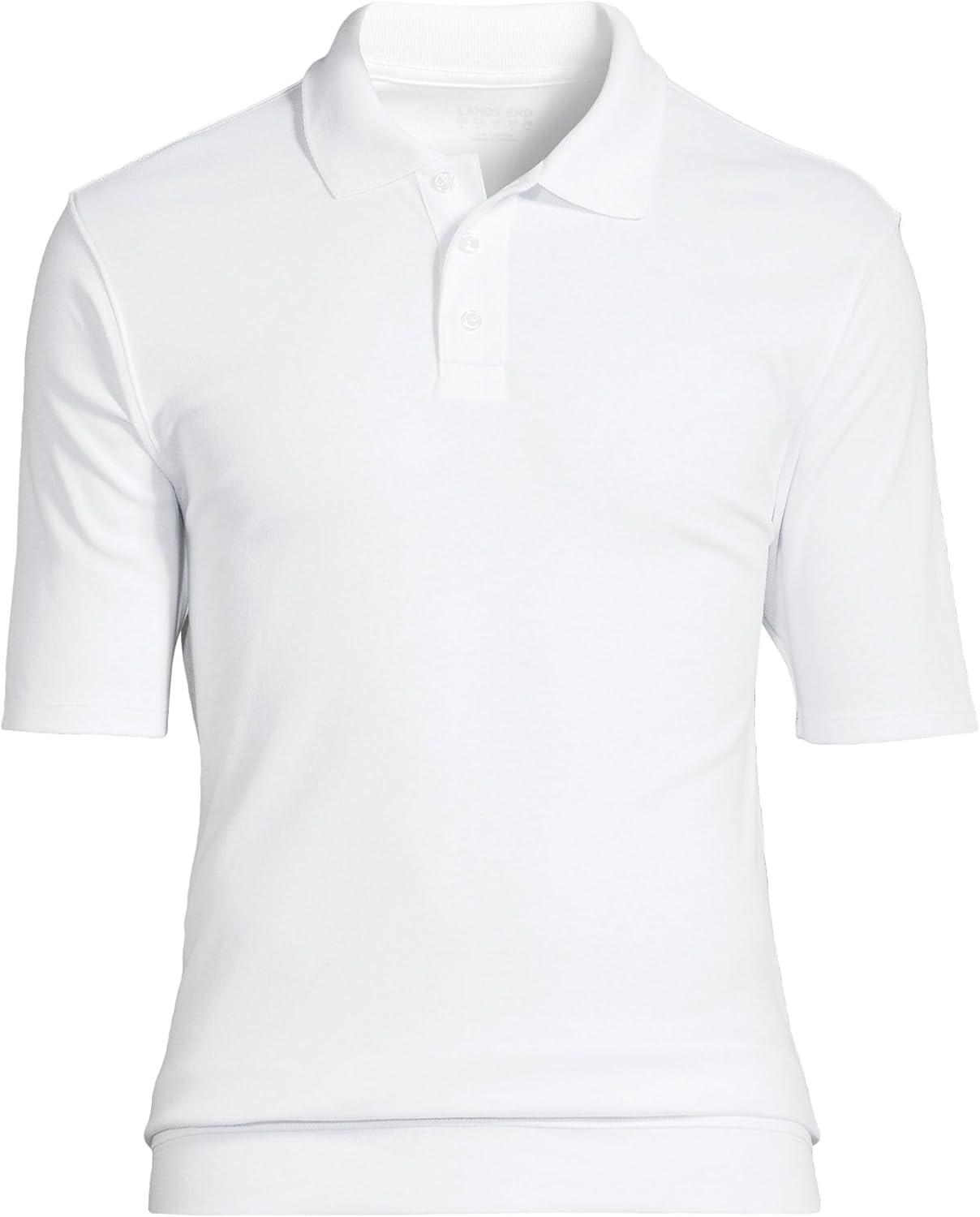 Lands’ End School Uniform Men’s Short Sleeve Banded Bottom Polo Shirt(White)