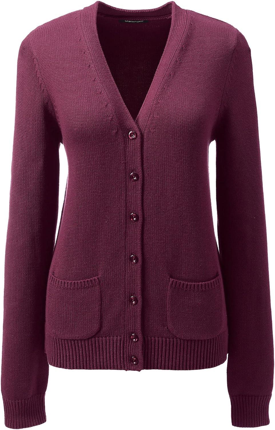 Lands’ End School Uniform Women’s Cotton Modal Button Front Cardigan Sweater(Burgundy)