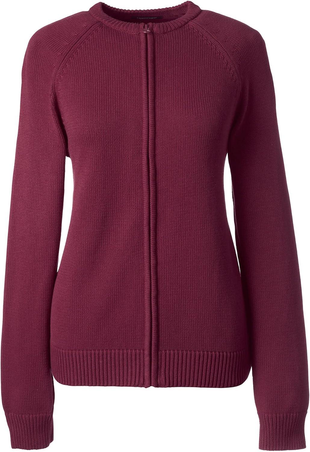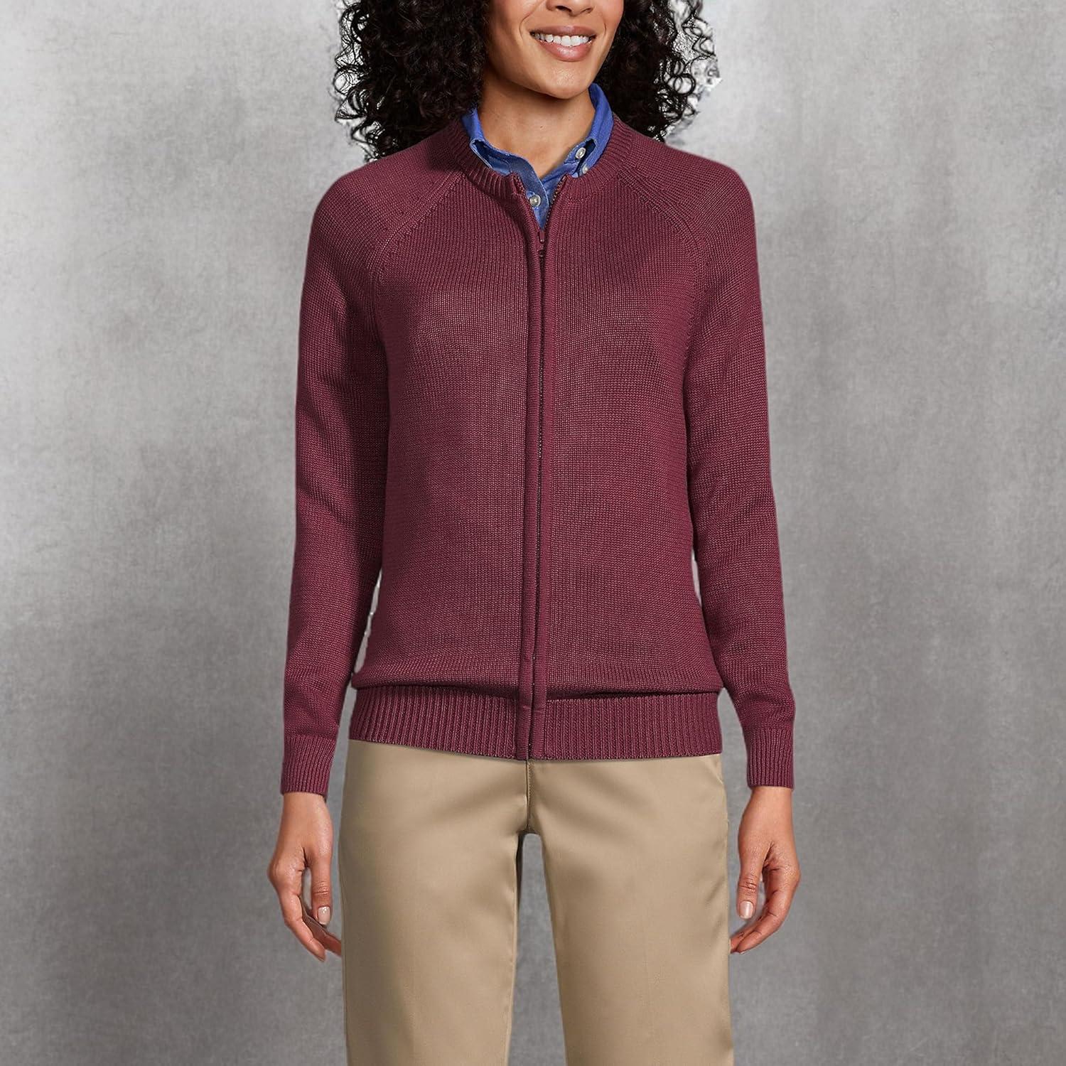 Lands’ End School Uniform Women’s Cotton Modal Zip-Front Cardigan Sweater(Burgundy)