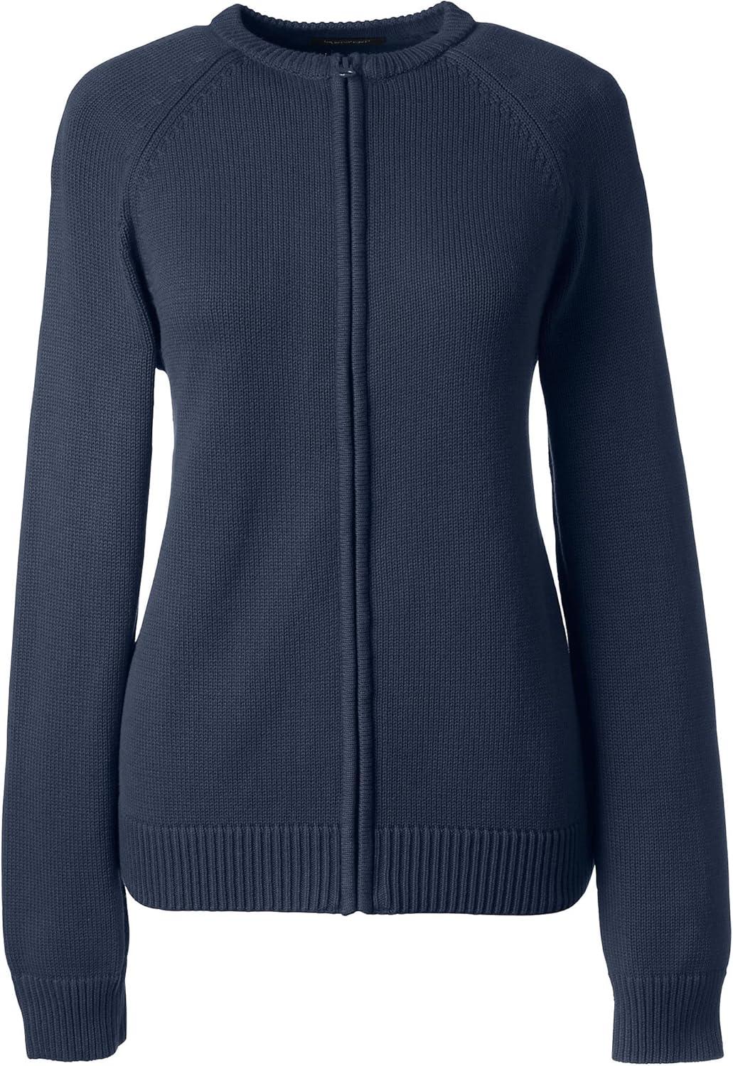 Lands’ End School Uniform Women’s Cotton Modal Zip-Front Cardigan Sweater(Classic Navy)