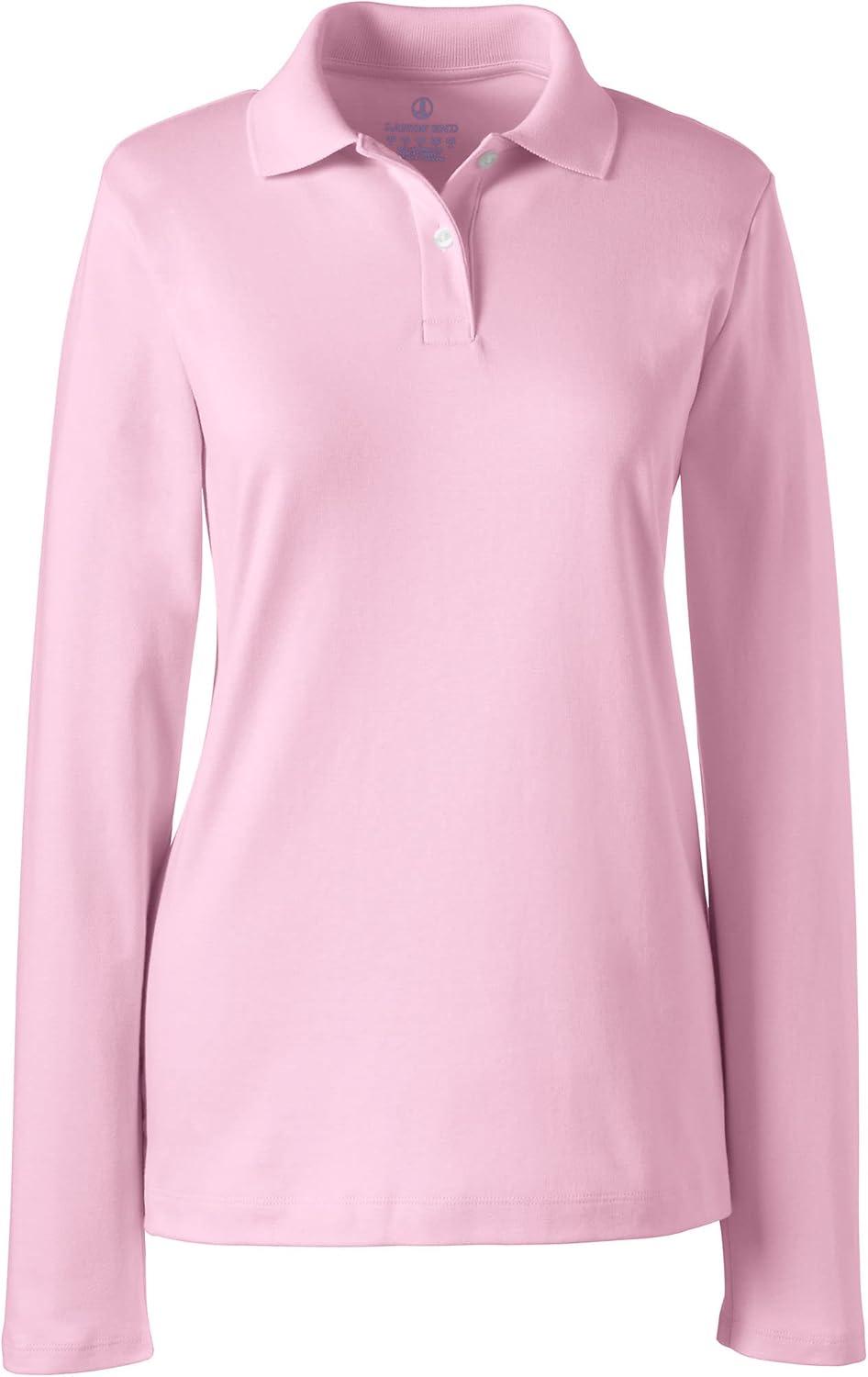 Lands’ End School Uniform Women’s Long Sleeve Feminine Fit Interlock Polo Shirt(Ice Pink)