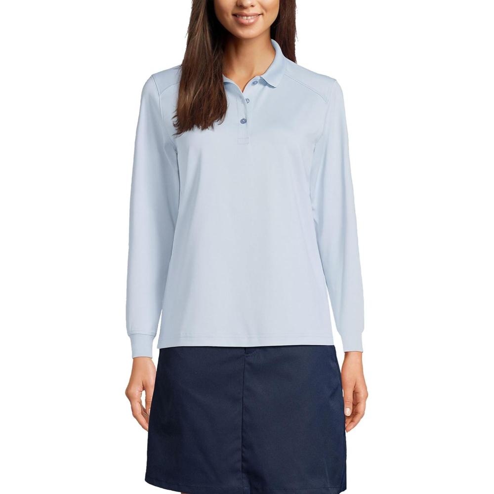 Lands’ End School Uniform Women’s Long Sleeve Rapid Dry Polo Shirt(Blue)