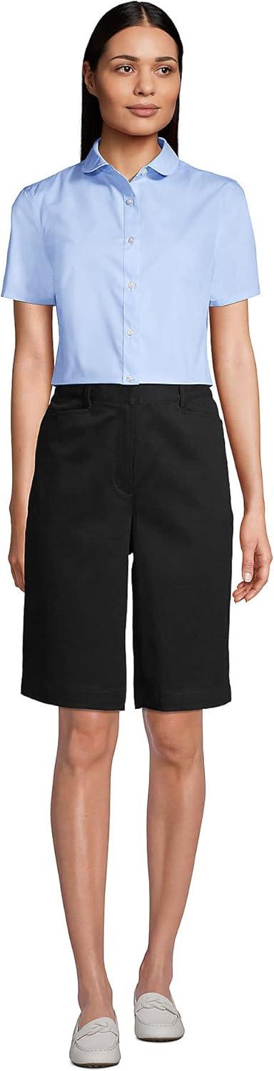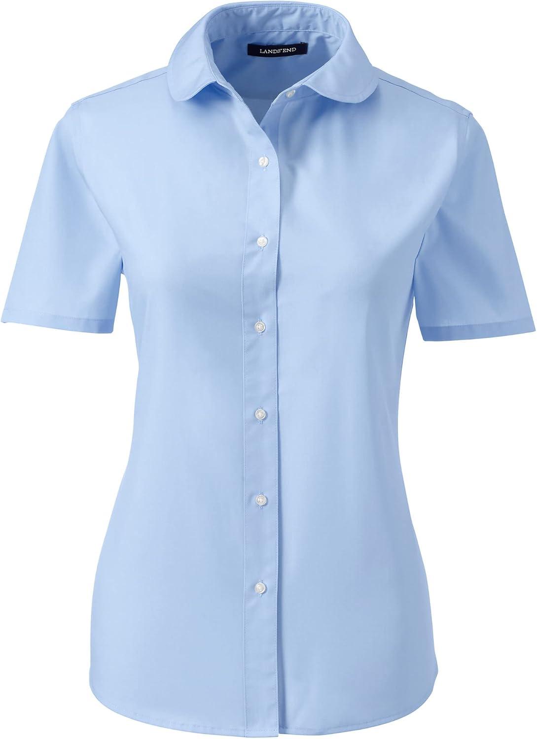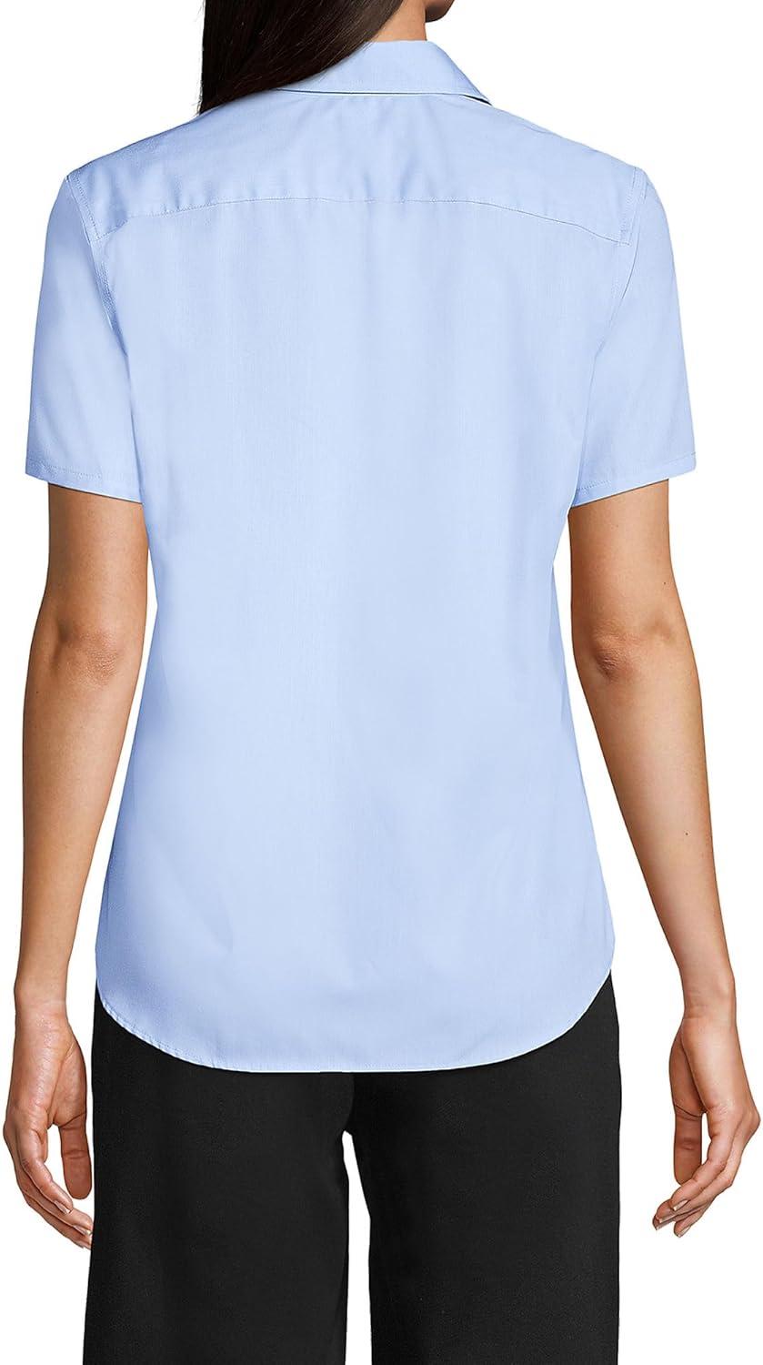 Lands’ End School Uniform Women’s Short Sleeve Peter Pan Collar Broadcloth Shirt(Light Sea Blue)