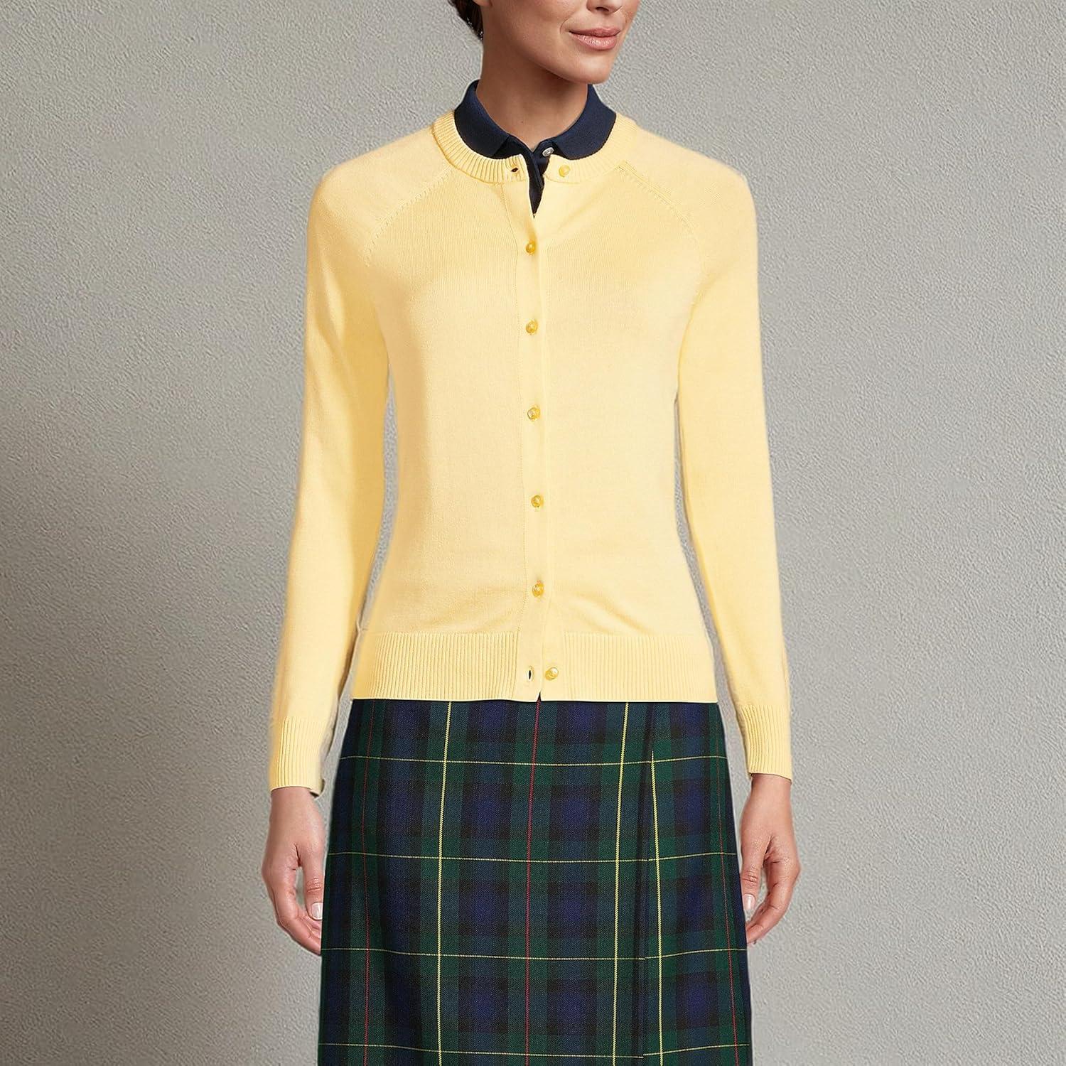 Lands’ End School Uniform Young Women’s Cotton Modal Cardigan Sweater(Maize)
