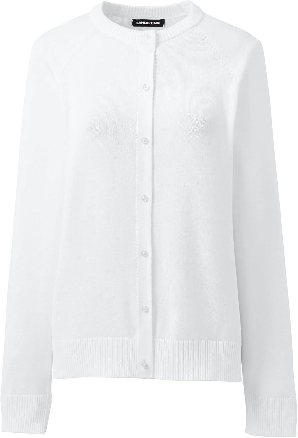 Lands’ End School Uniform Young Women’s Cotton Modal Cardigan Sweater(White)