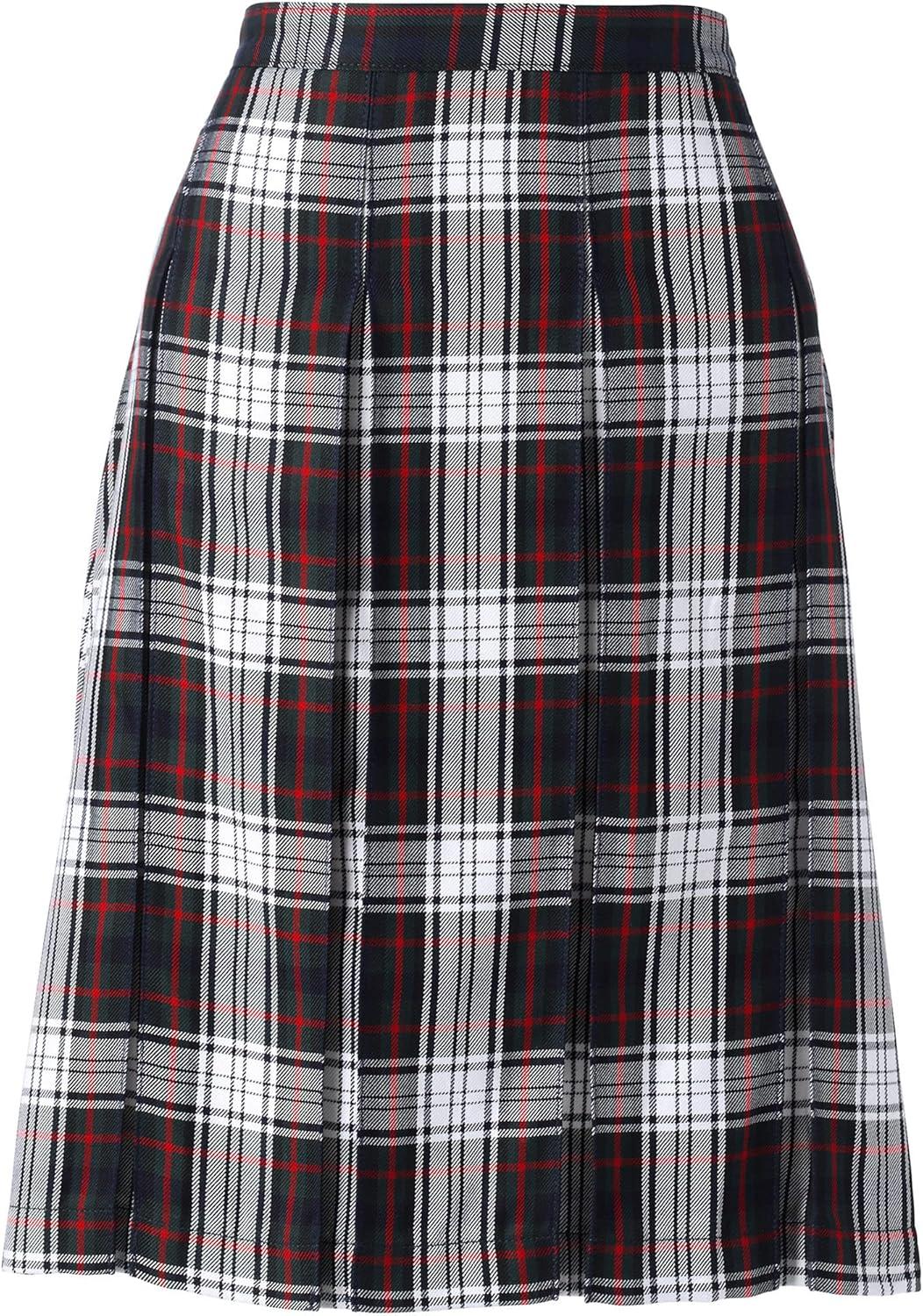 Lands’ End School Uniform Young Women’s Plaid Box Pleat Skirt Top of The Knee(Evergreen/White Plaid)
