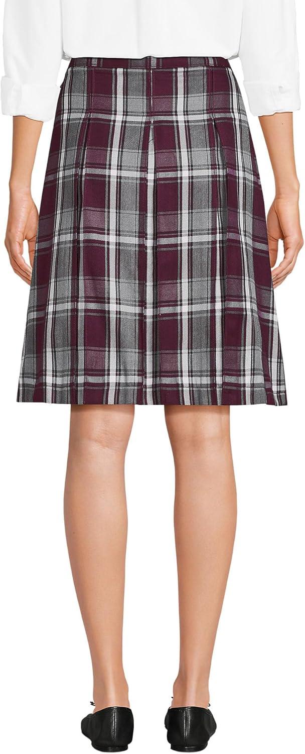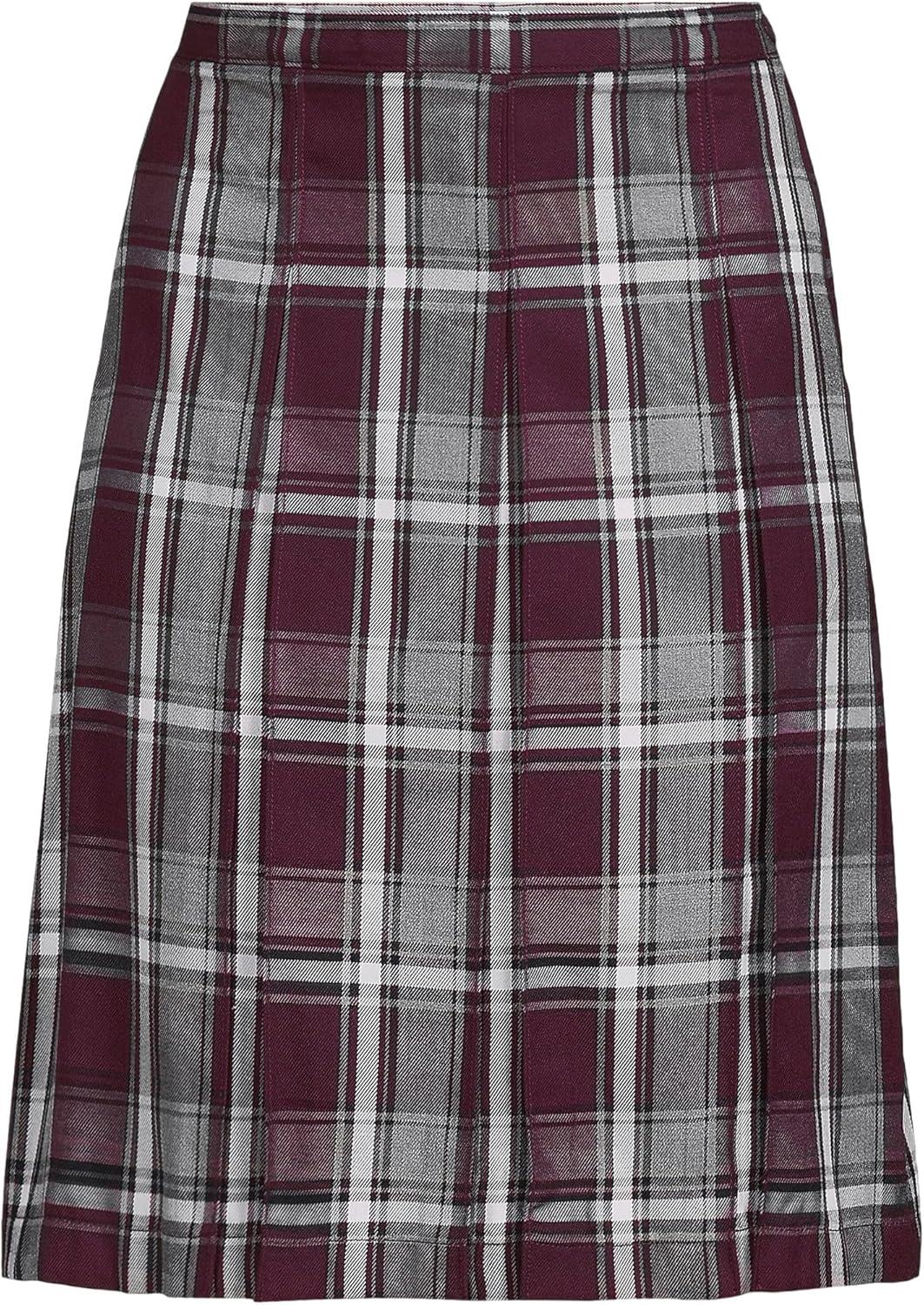 Lands’ End School Uniform Young Women’s Plaid Box Pleat Skirt Top of The Knee(Plaid Burgundy/Gray)