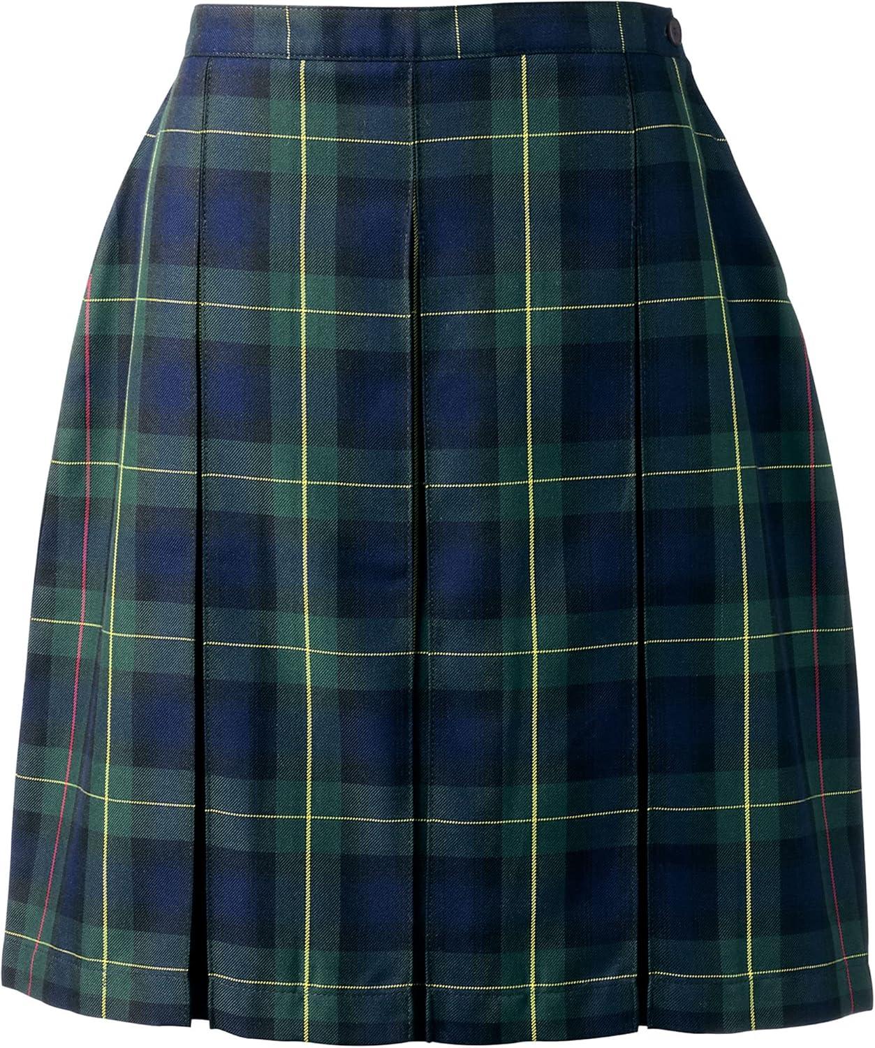 Lands’ End School Uniform Young Women’s Plaid Box Pleat Skirt Top of The Knee(Plaid Hunter/Classic Navy)