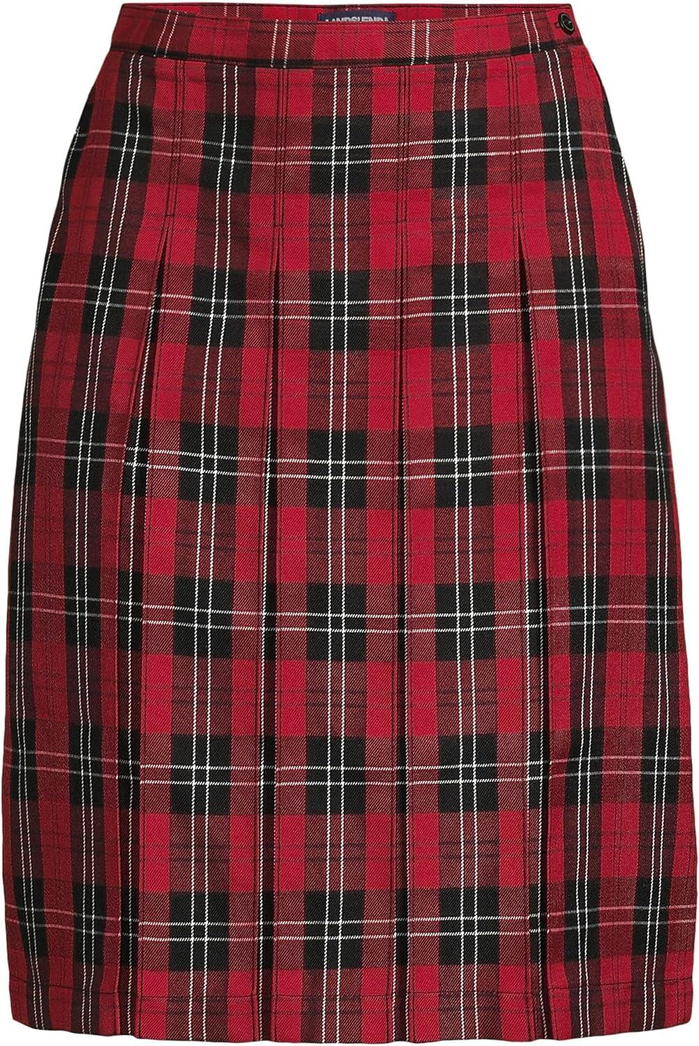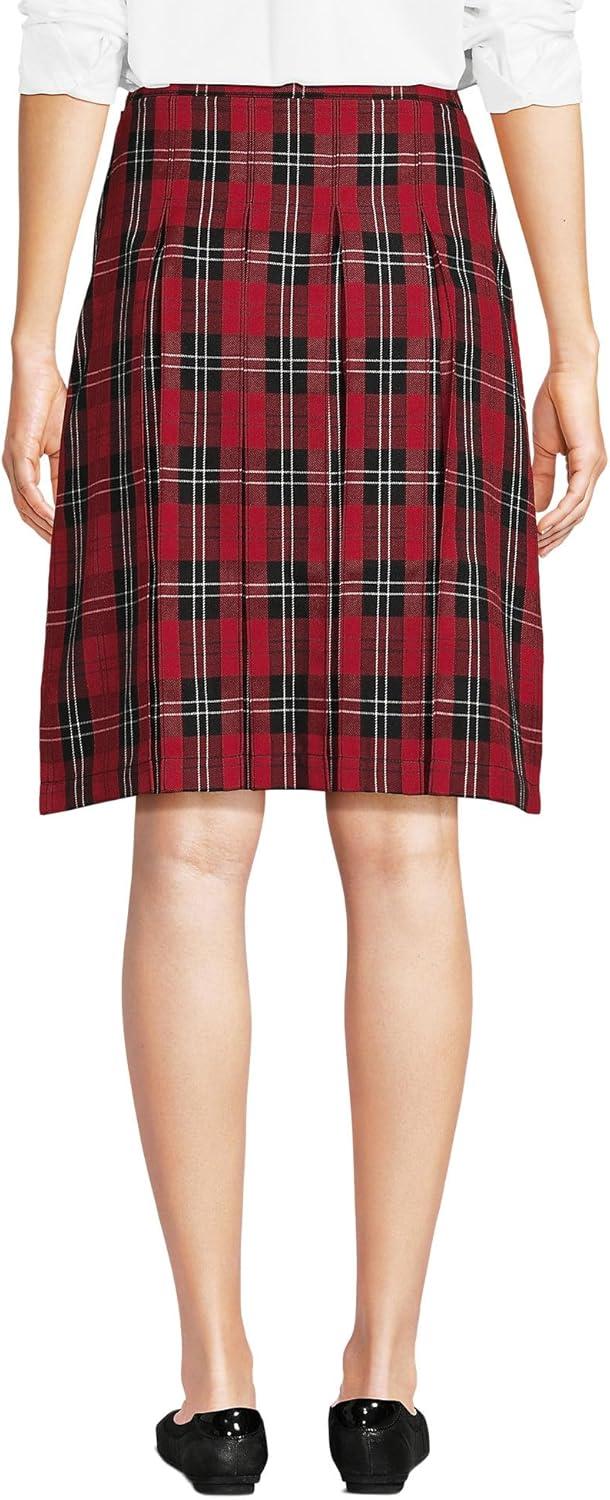 Lands’ End School Uniform Young Women’s Plaid Box Pleat Skirt Top of The Knee(Red/Black Plaid)