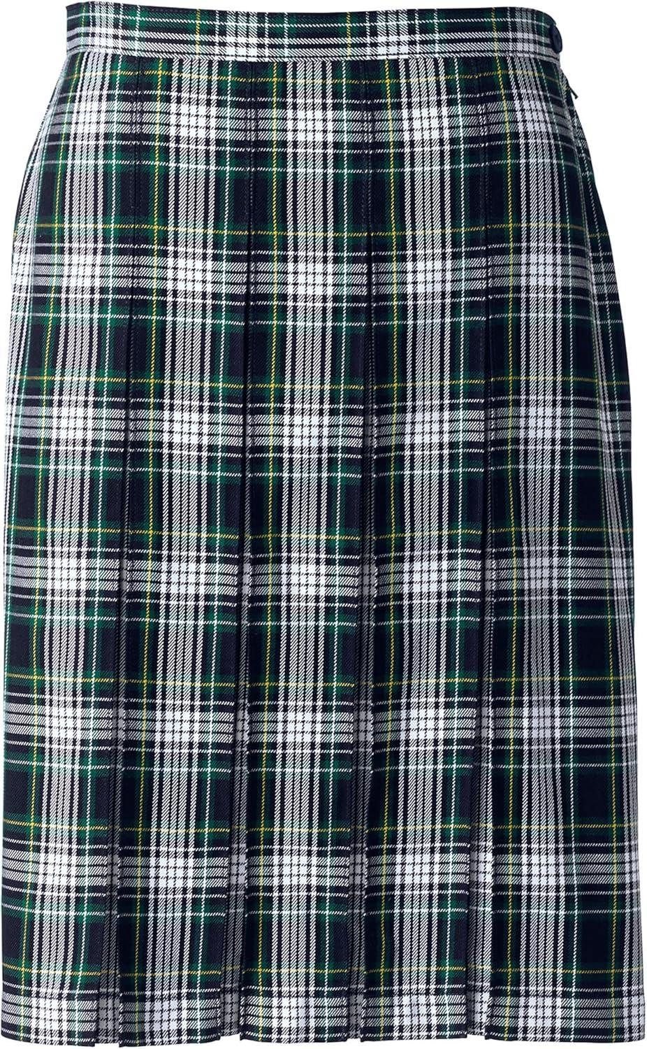 Lands’ End School Uniform Young Women’s Plaid Box Pleat Skirt Top of The Knee(White/Evergreen Plaid)