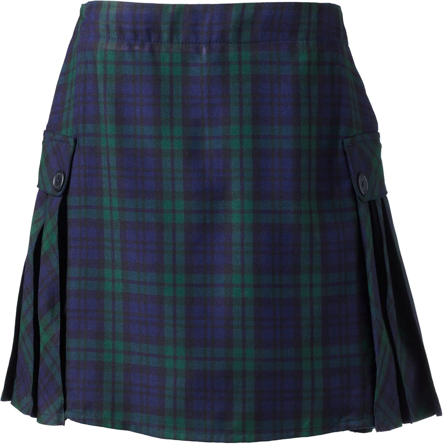 Lands’ End School Uniform Young Women’s Side Pleat Plaid Skort Above The Knee(Classic Navy/Evergreen Plaid)