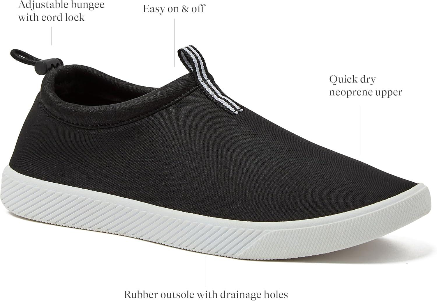 Lands’ End Slip On Water Shoes for Women, Quick Dry Neoprene Sport Womens Water Shoes with Drainage Holes for Beach or Pool, Pink, Blue or Black Swim Shoes Women, Adult Size 6-12 Aqua Socks(Black/White)