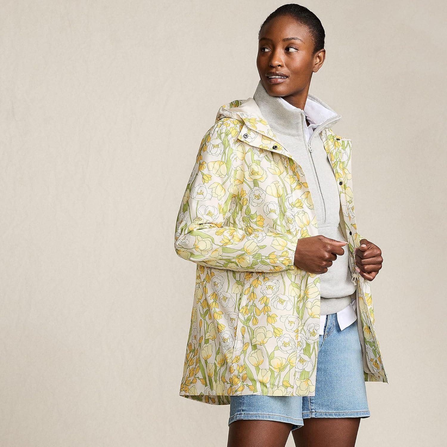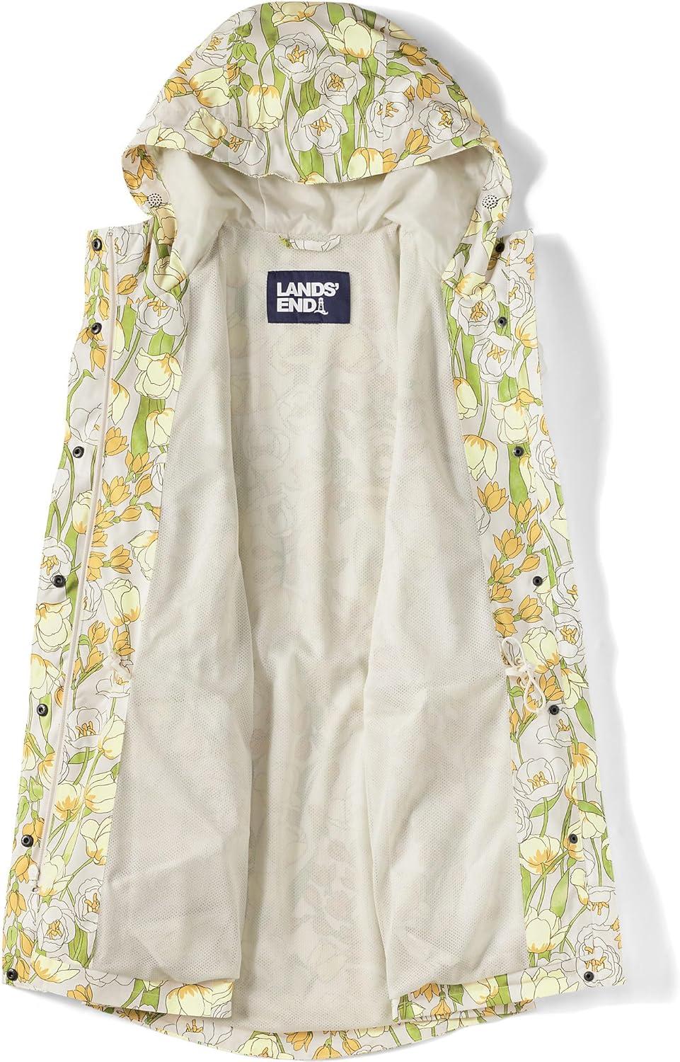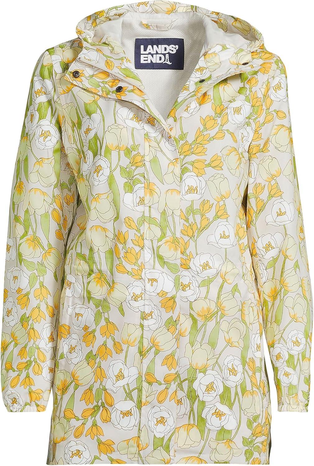 Lands’ End Squall Packable Waterproof Raincoat(Pale Yellow/Ivory Tulip)