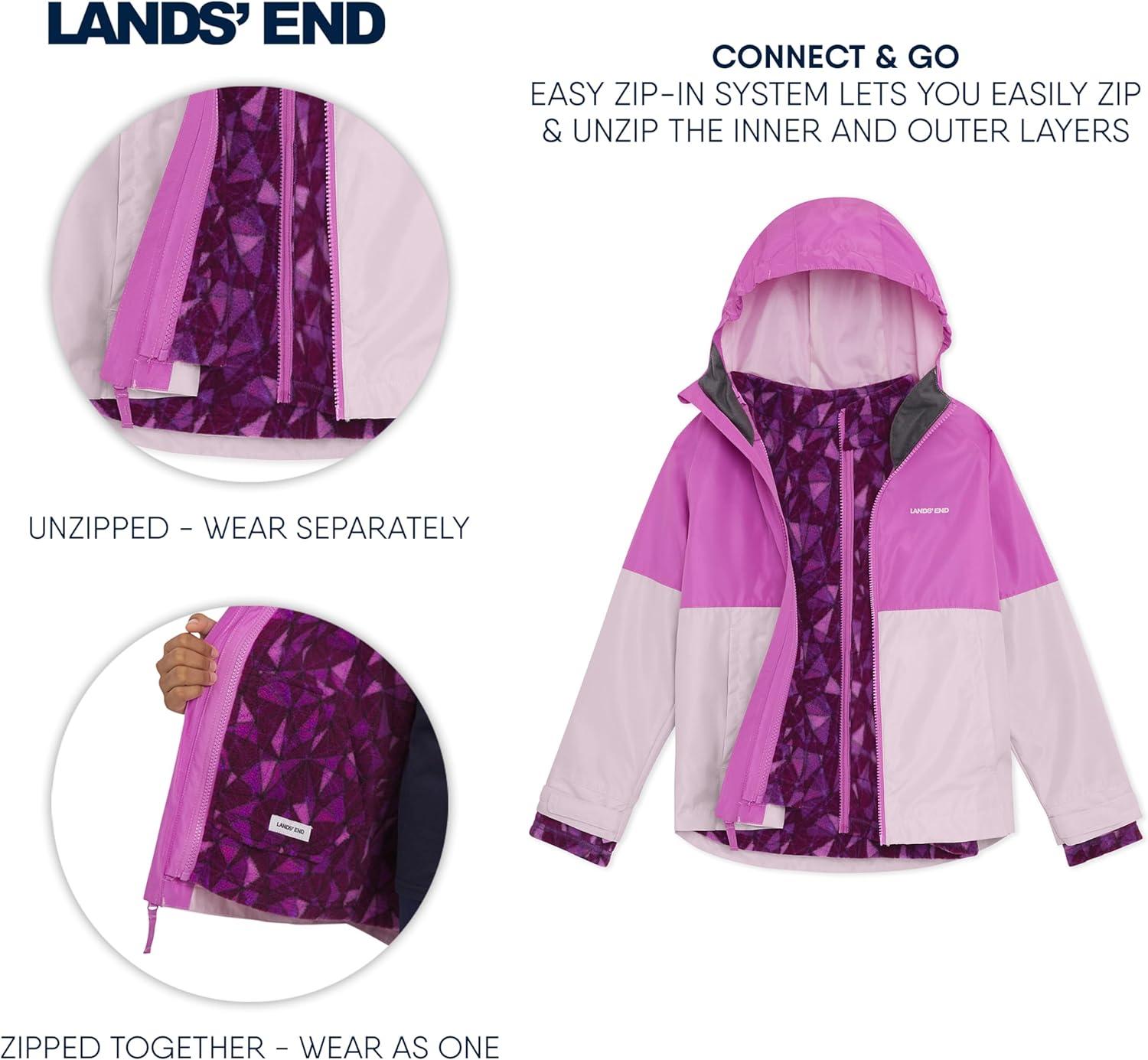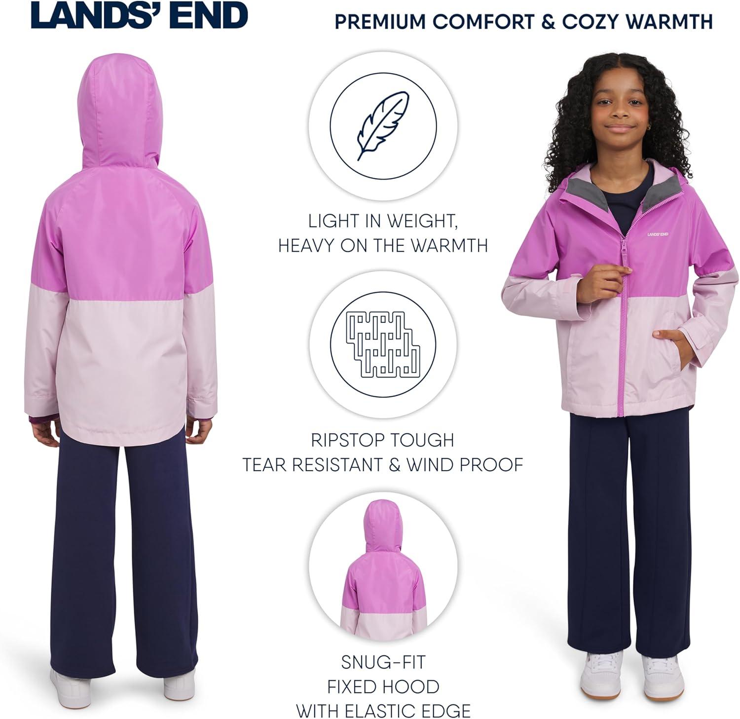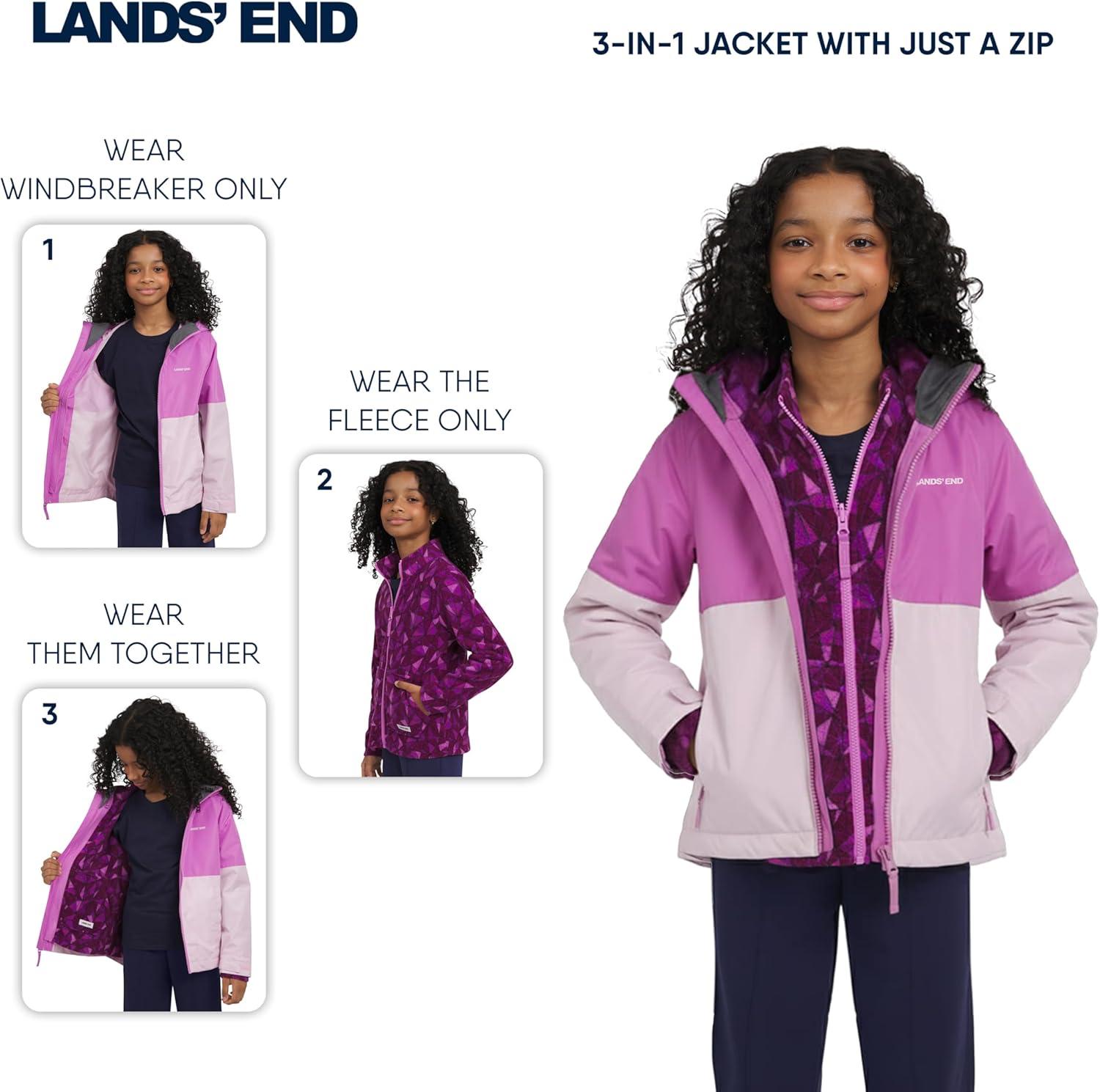 Lands’ End Unisex Kids 3-in-1 Water Resistant Windbreaker and Zip-out Polar Fleece Jacket(Lilac)
