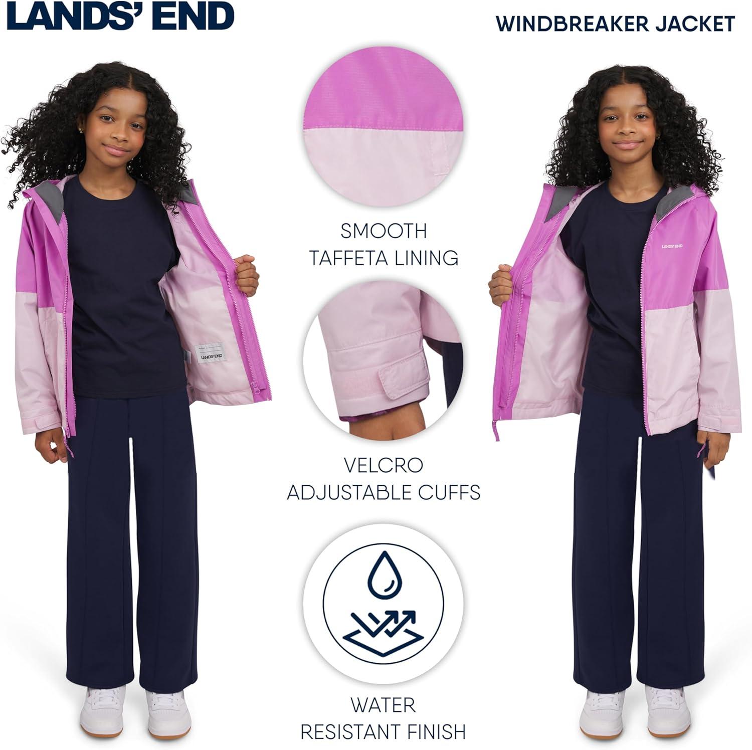 A legacy of timeless quality and dependable design, Lands' End is committed to crafting comfortable, durable clothing for everyday life. This jacket embodies that promise with its 3-in-1 versatility, giving them three jackets in one to handle any weather. A removable fleece liner zips quickly into a durable, water-resistant windbreaker. They can wear the windbreaker alone for active days, the fleece for a cozy look, or zip them together for a warmer jacket in cold weather. Experience the ultimate in softness and warmth with this versatile design. The plush polar fleece interior feels cozy against the skin, delivering a lightweight feel that's heavy on the warmth. At the same time, this windbreaker jacket provides a reliable defense against the elements. The durable ripstop fabric resists wind and tearing, while a snug-fit hood and Velcro-adjustable cuffs help to seal out cold drafts, ensuring they stay comfortable in any conditions. This jacket is built with smart design and quality construction from top to bottom. A clever zip-in system securely attaches the two pieces, while the jacket features a total of four side pockets—two on the windbreaker and two on the fleece—for secure storage. For easy care, it is machine washable, and the smooth taffeta lining ensures it's easy to slip on and off. With a locker loop for simple hanging and a reflective logo, this jacket is a dependable choice for all of their adventures.