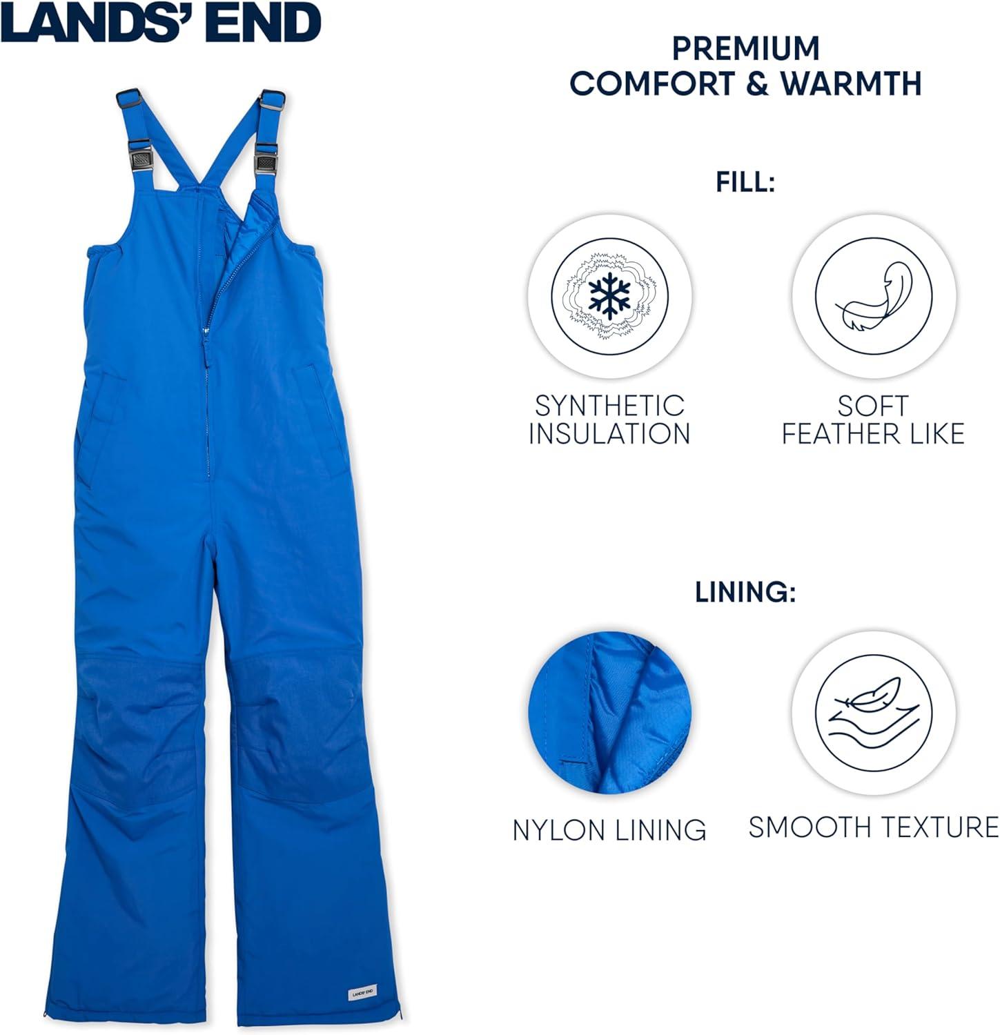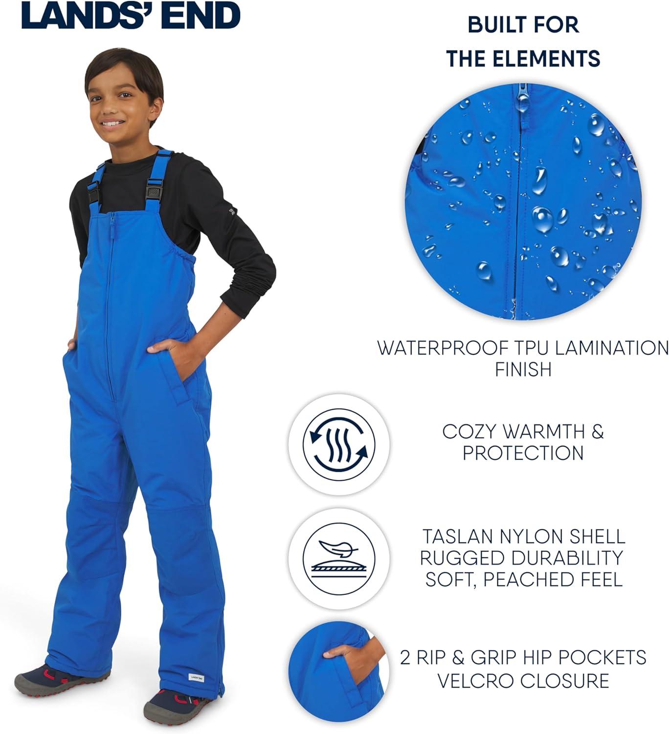 Lands’ End Unisex Kids Squall Waterproof Adjustable Insulated Iron Knee Snow Bib Overalls(Cobalt)