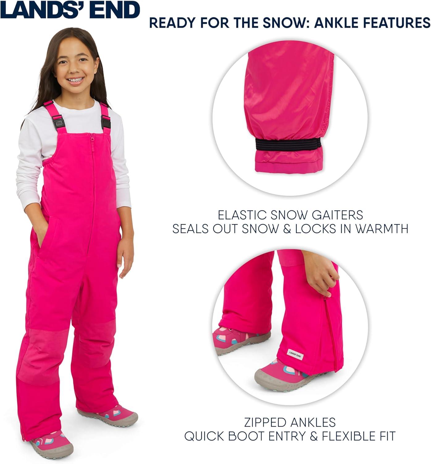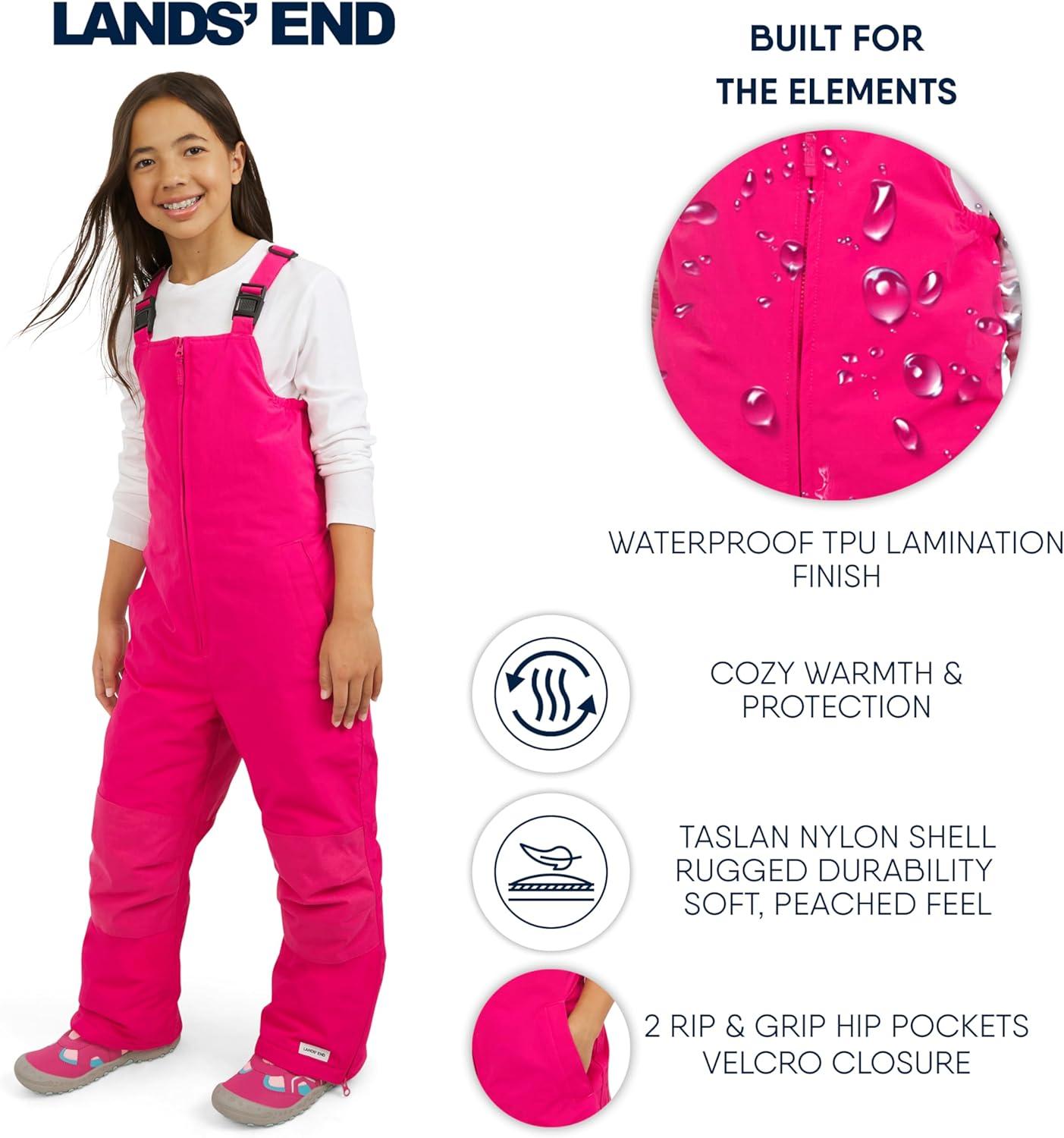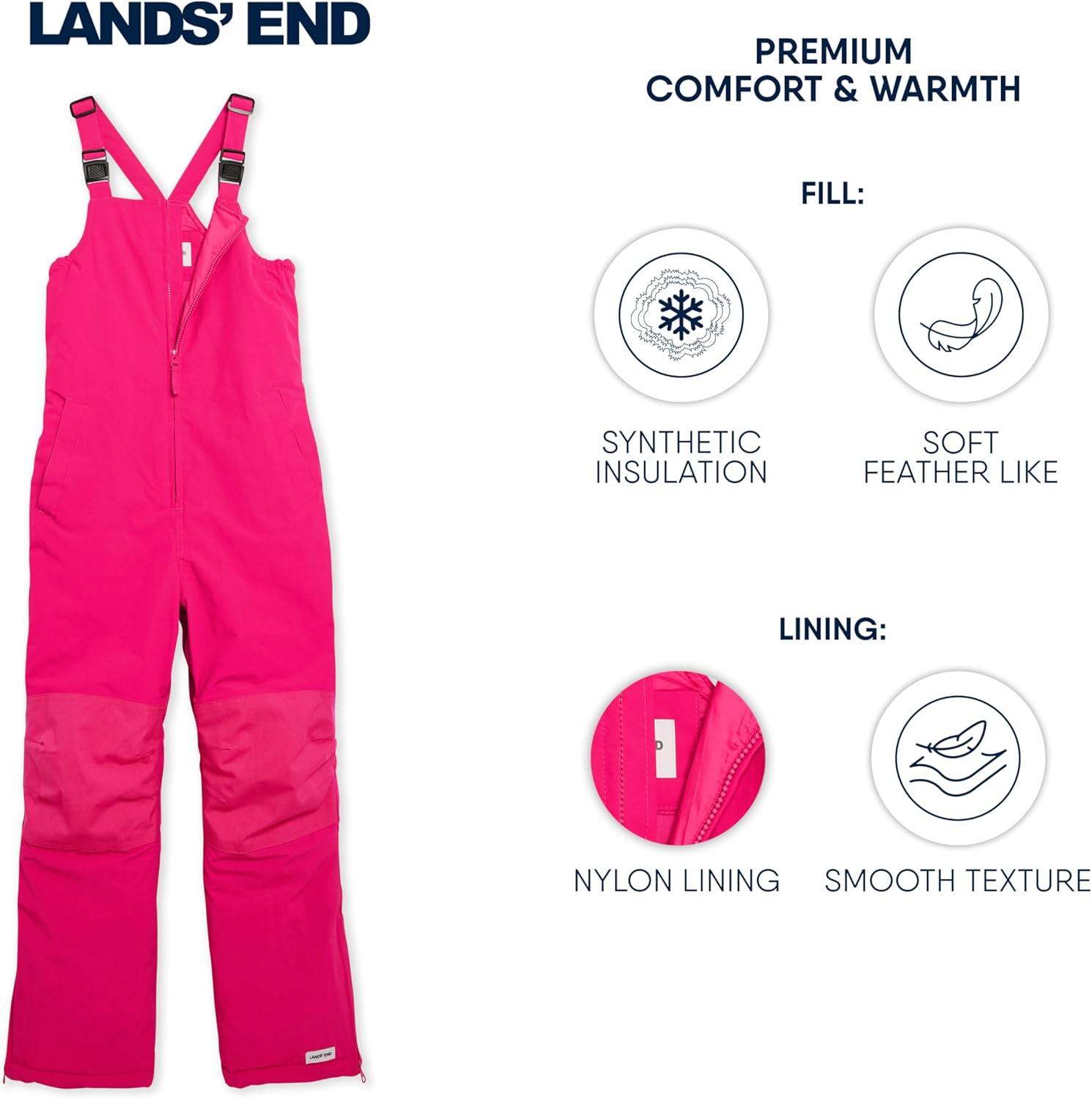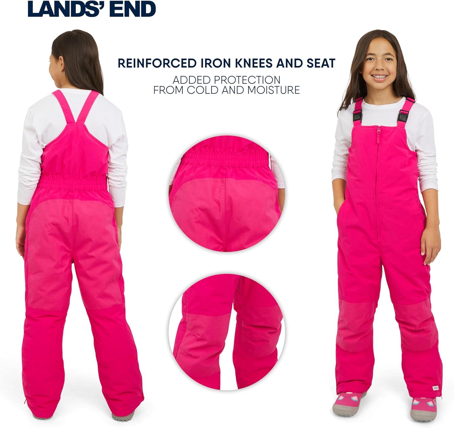 Lands’ End Unisex Kids Squall Waterproof Adjustable Insulated Iron Knee Snow Bib Overalls(Raspberry)