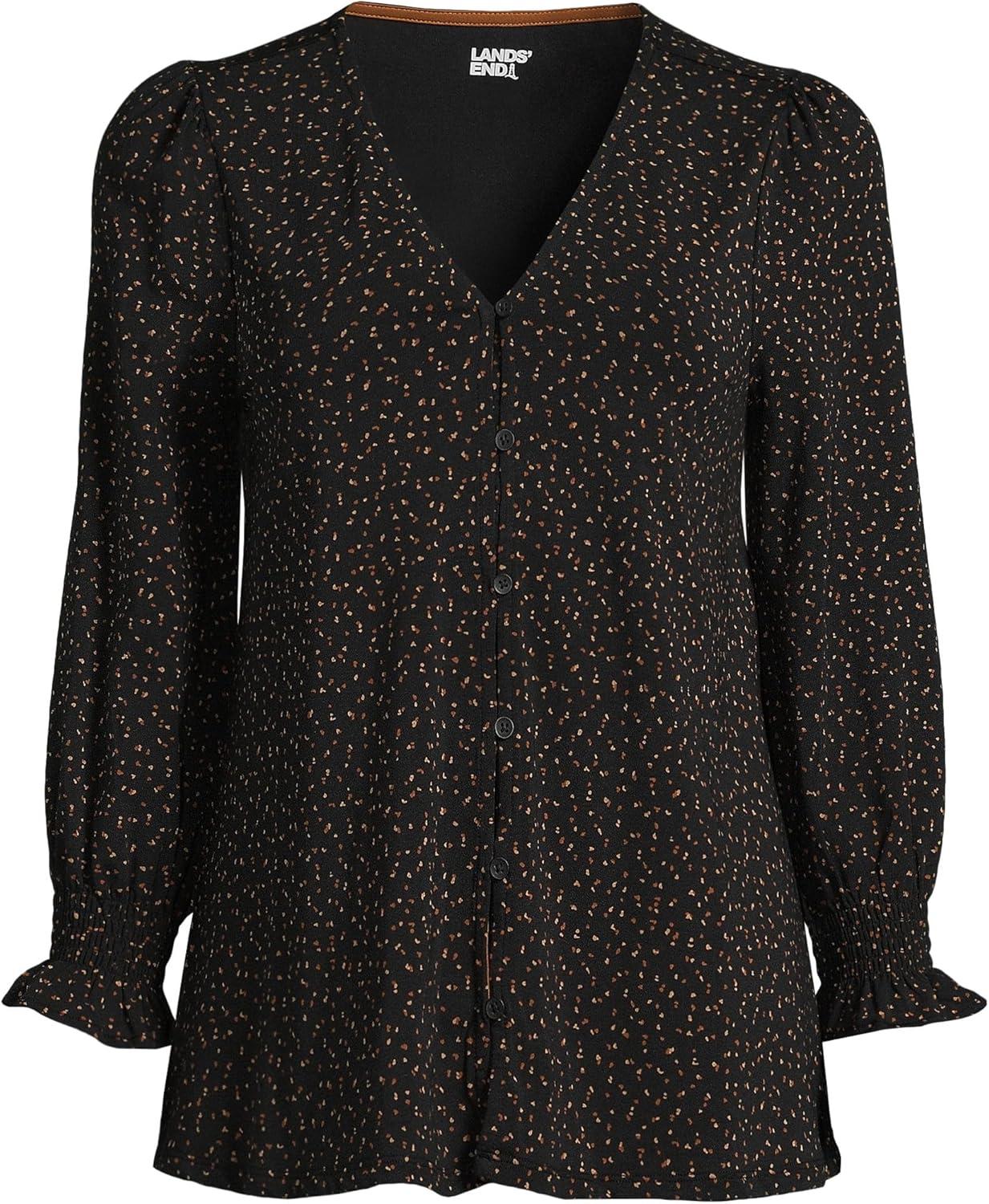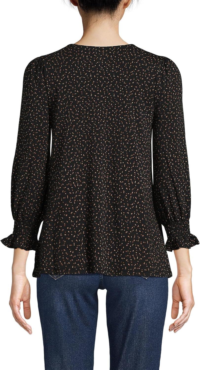 Lands’ End Women’s 3/4 Sleeve Lightweight Jersey Button Front Top(Black Terrazzo Dot)